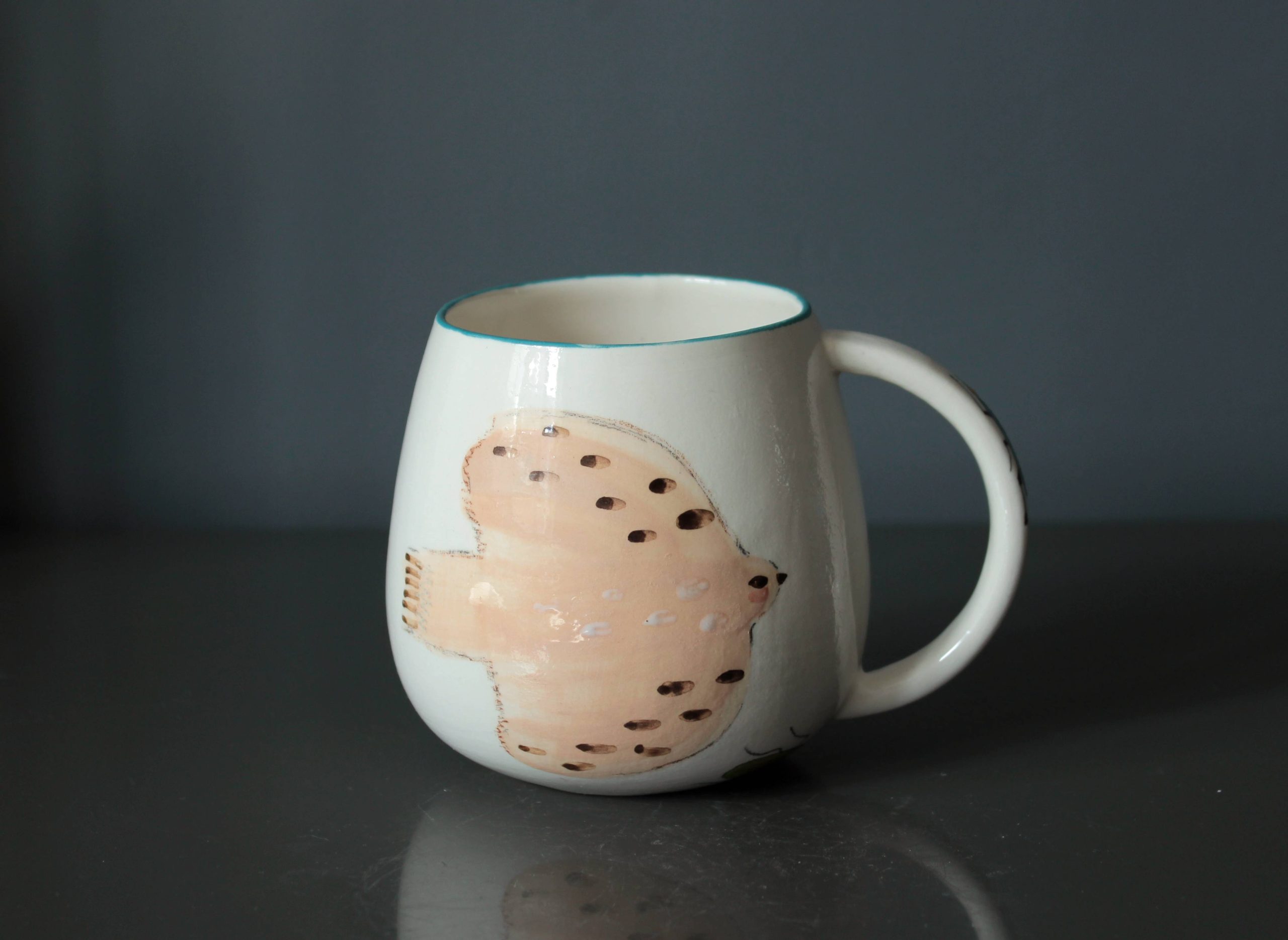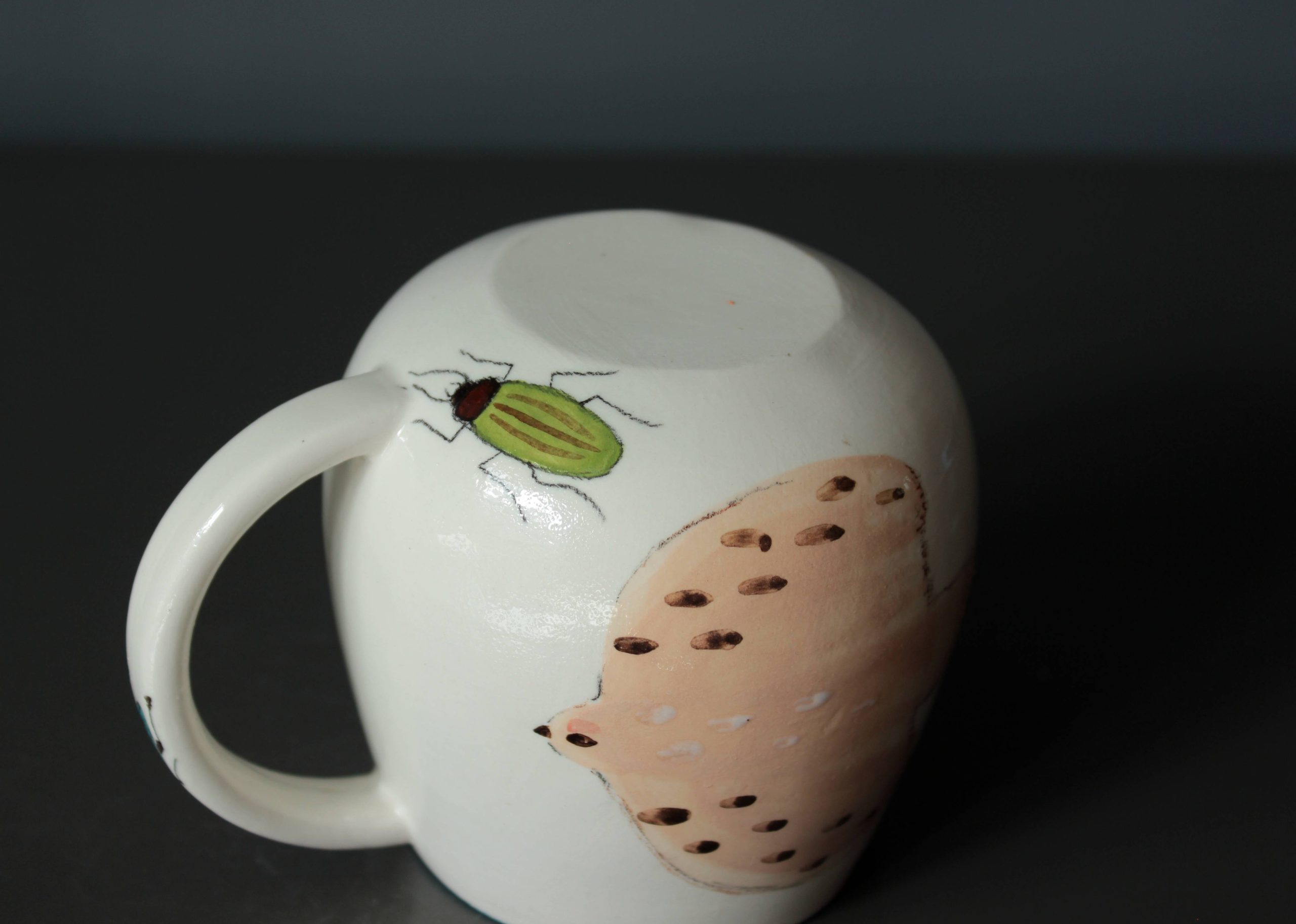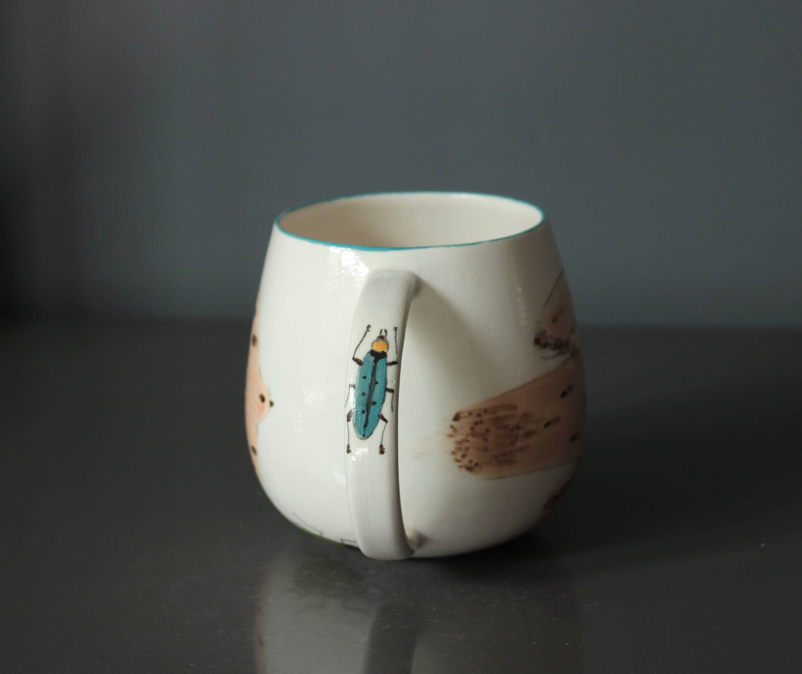 Bu el yapımı porselen kupa, doğanın zarif yaratıklarını taşıyor. Her iki yüzünde özgürlüğün simgesi büyük kuşlar uçuyor. Üzerindeki renkli böcekler doğanın küçük mucizelerini ve renk cümbüşünü yansıtıyor. Her detay, benzersiz bir hikaye anlatıyor.