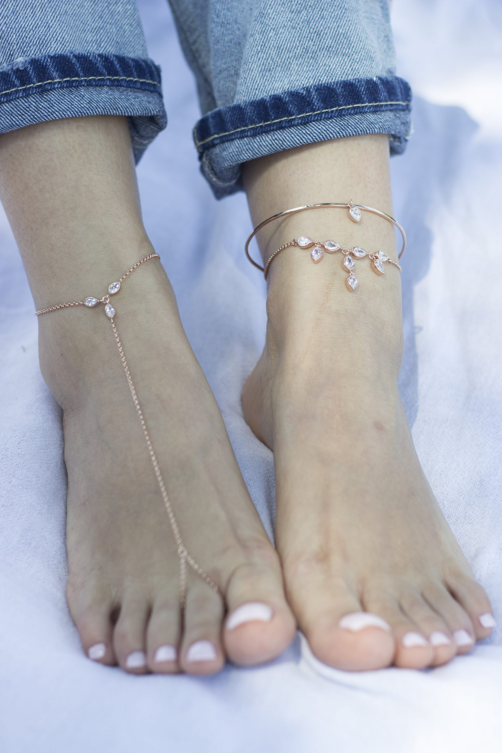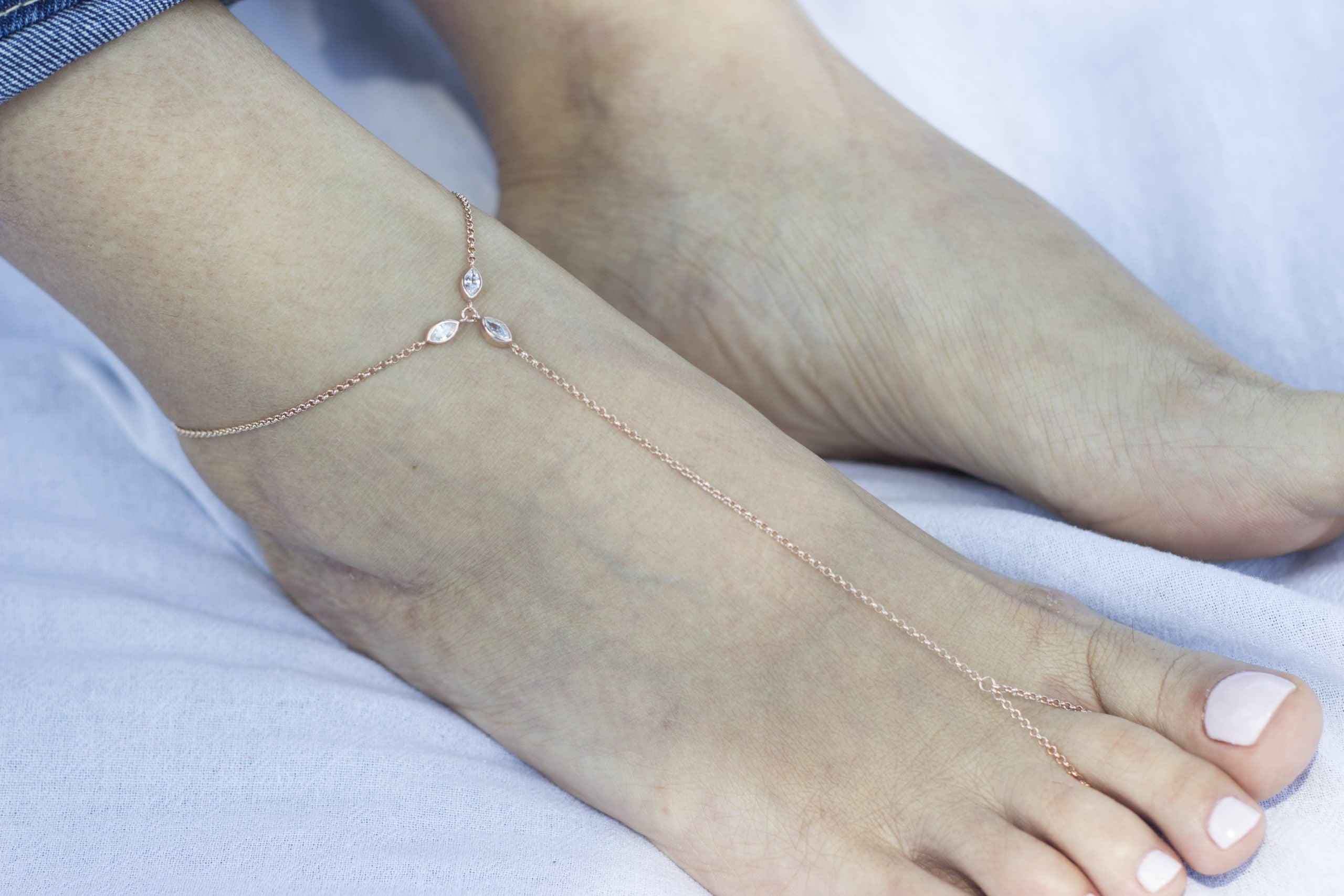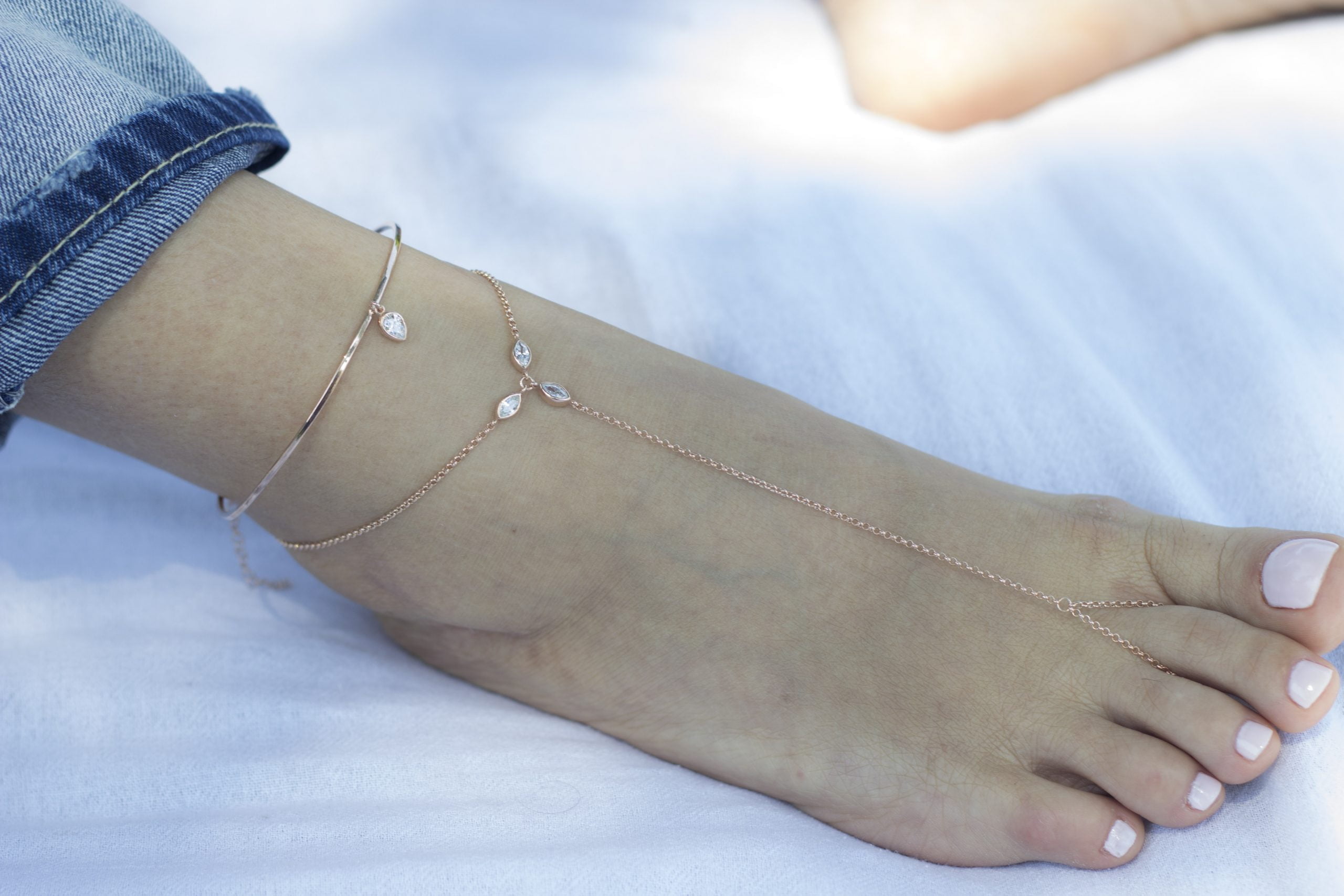 Zirkon Taşlı Gümüş Ayak Zinciri / Studio Mirage