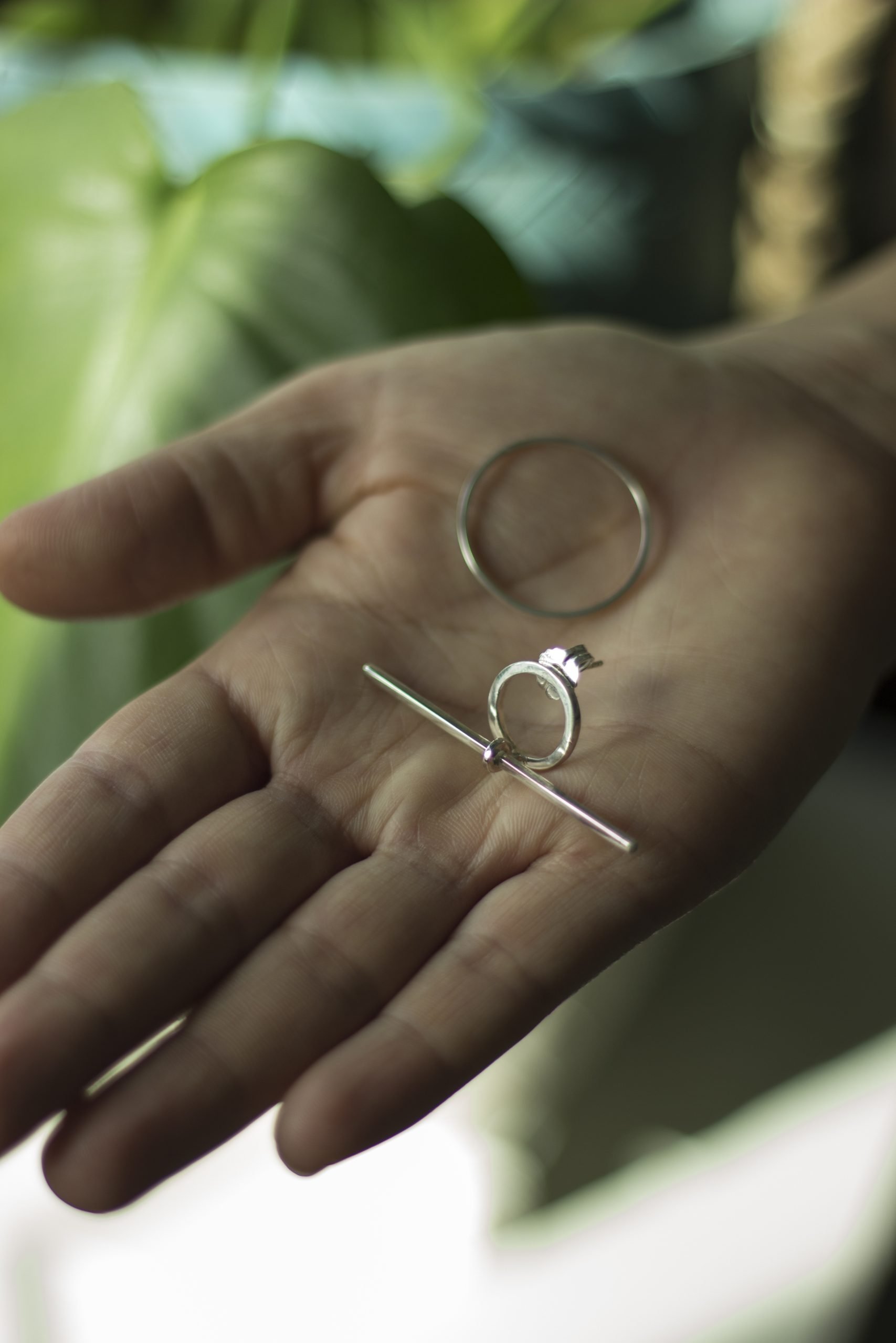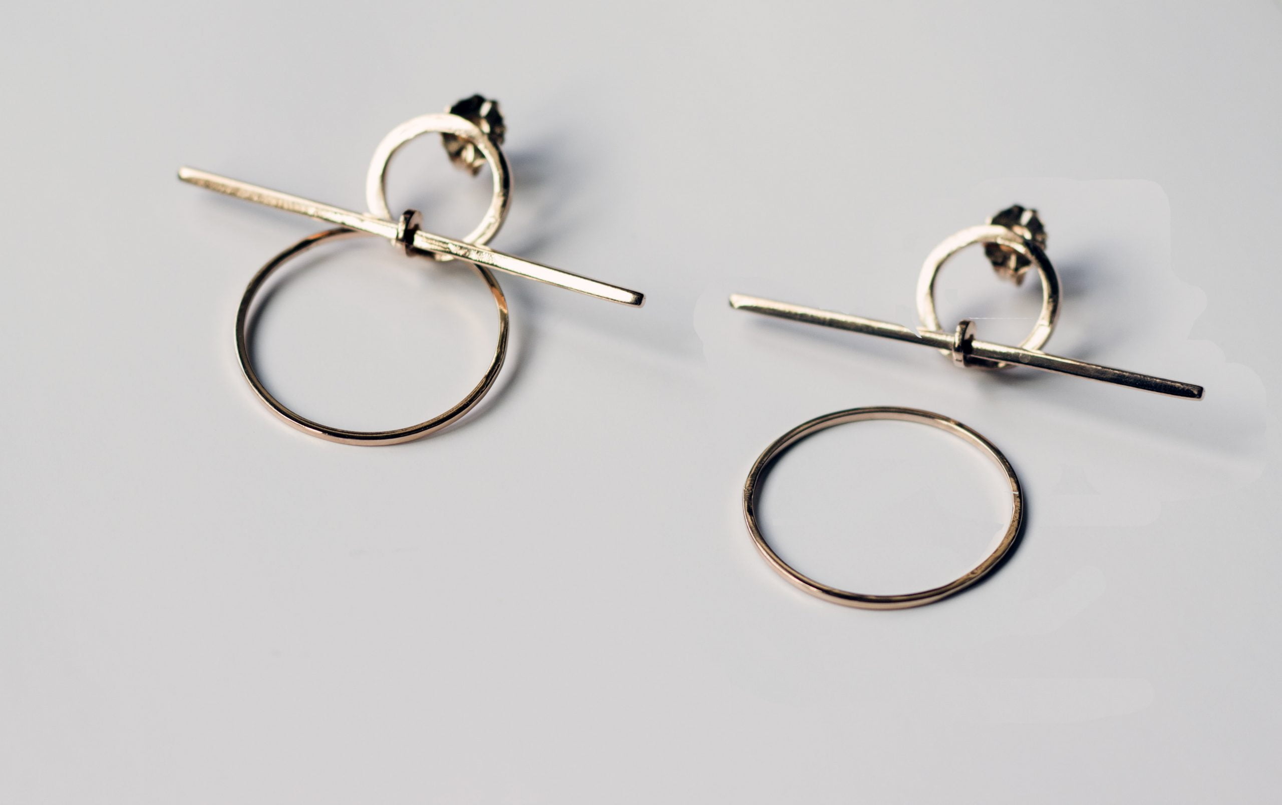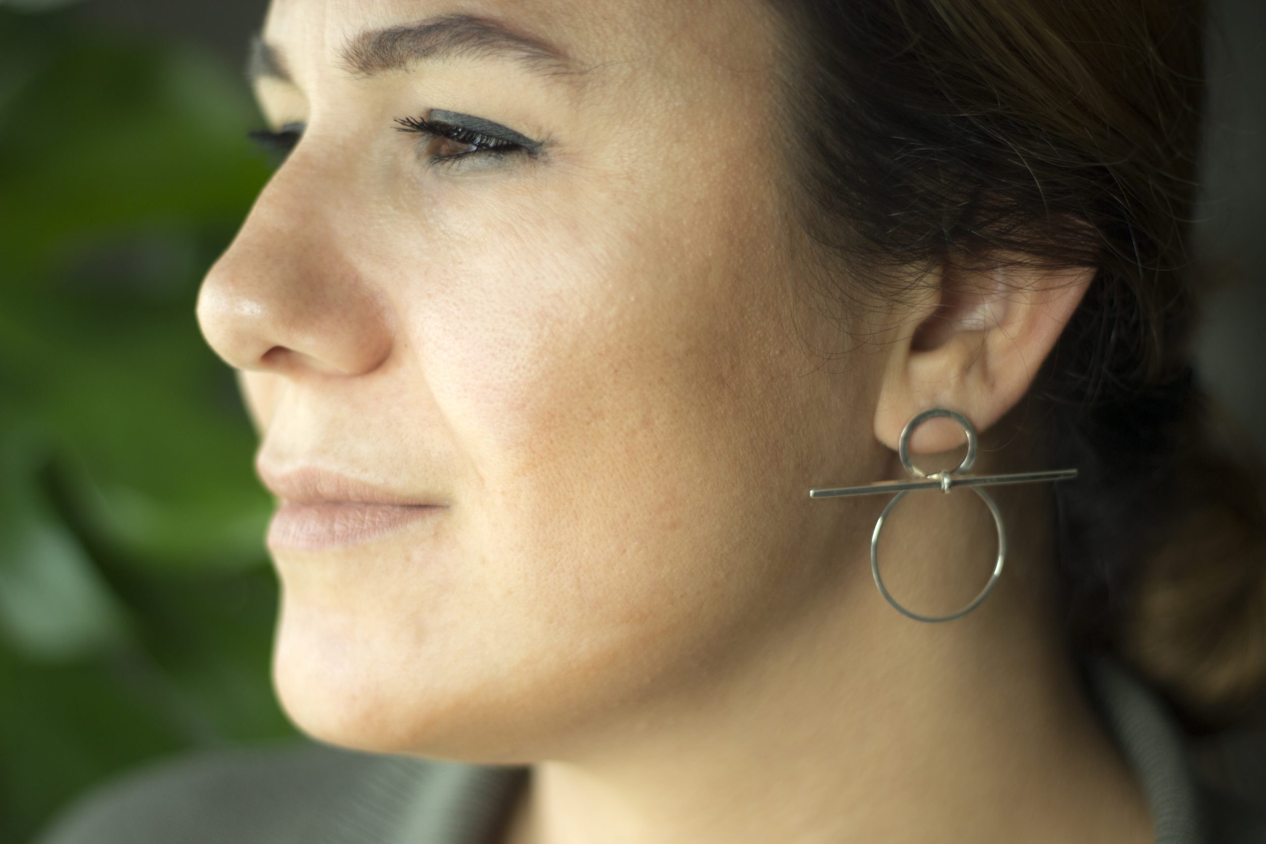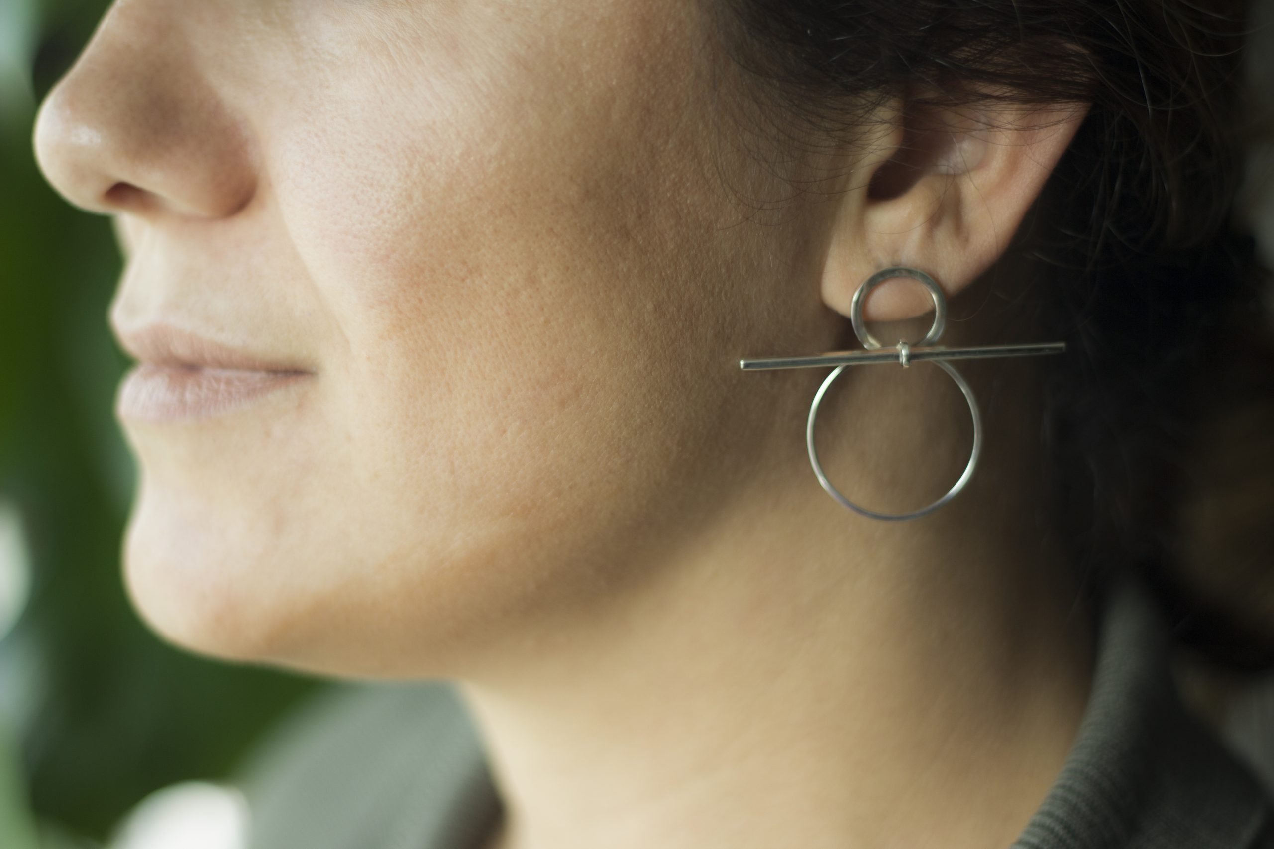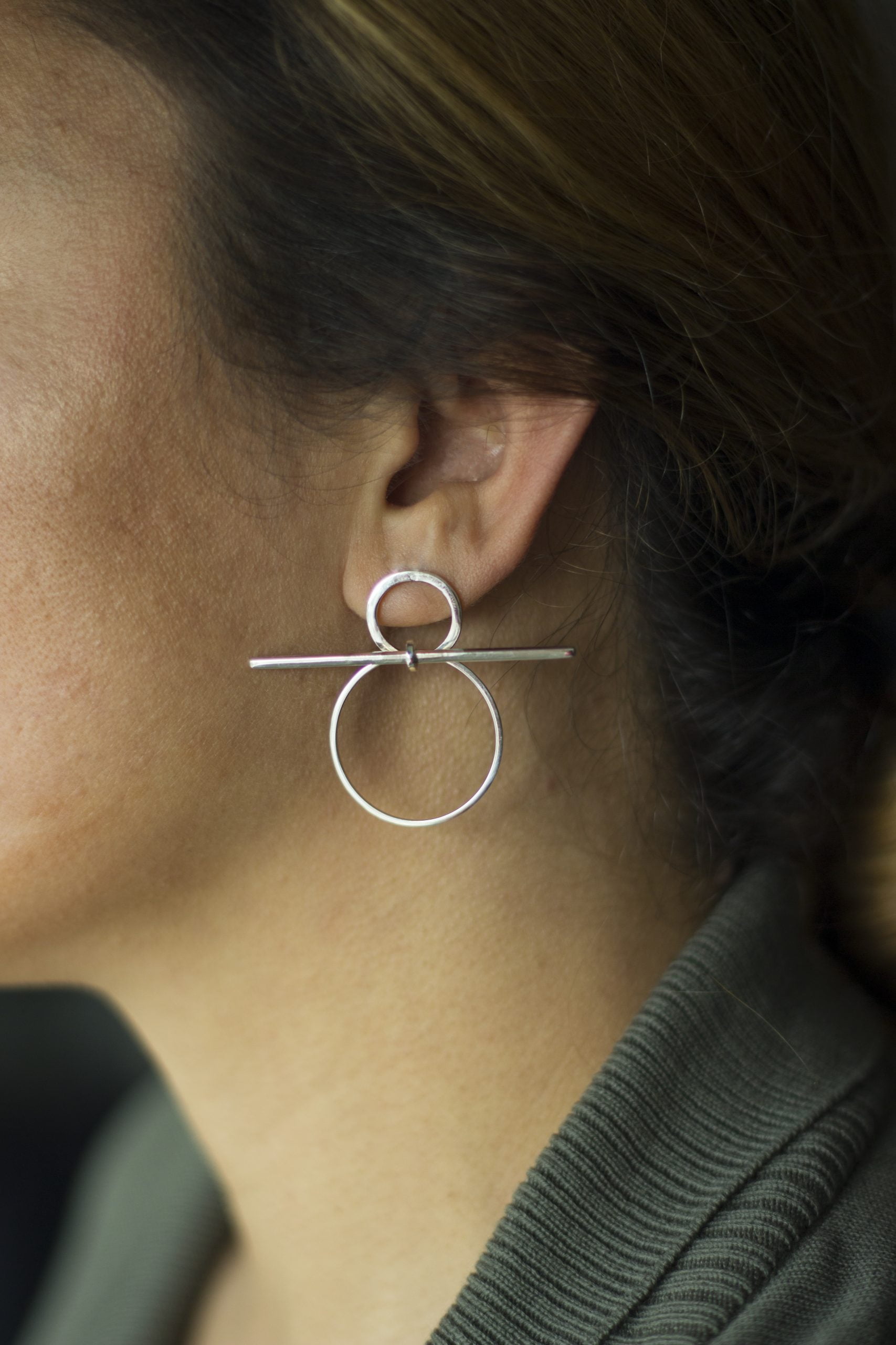 Birleşen Çemberler ve Çizgi Gümüş Küpe / Çift