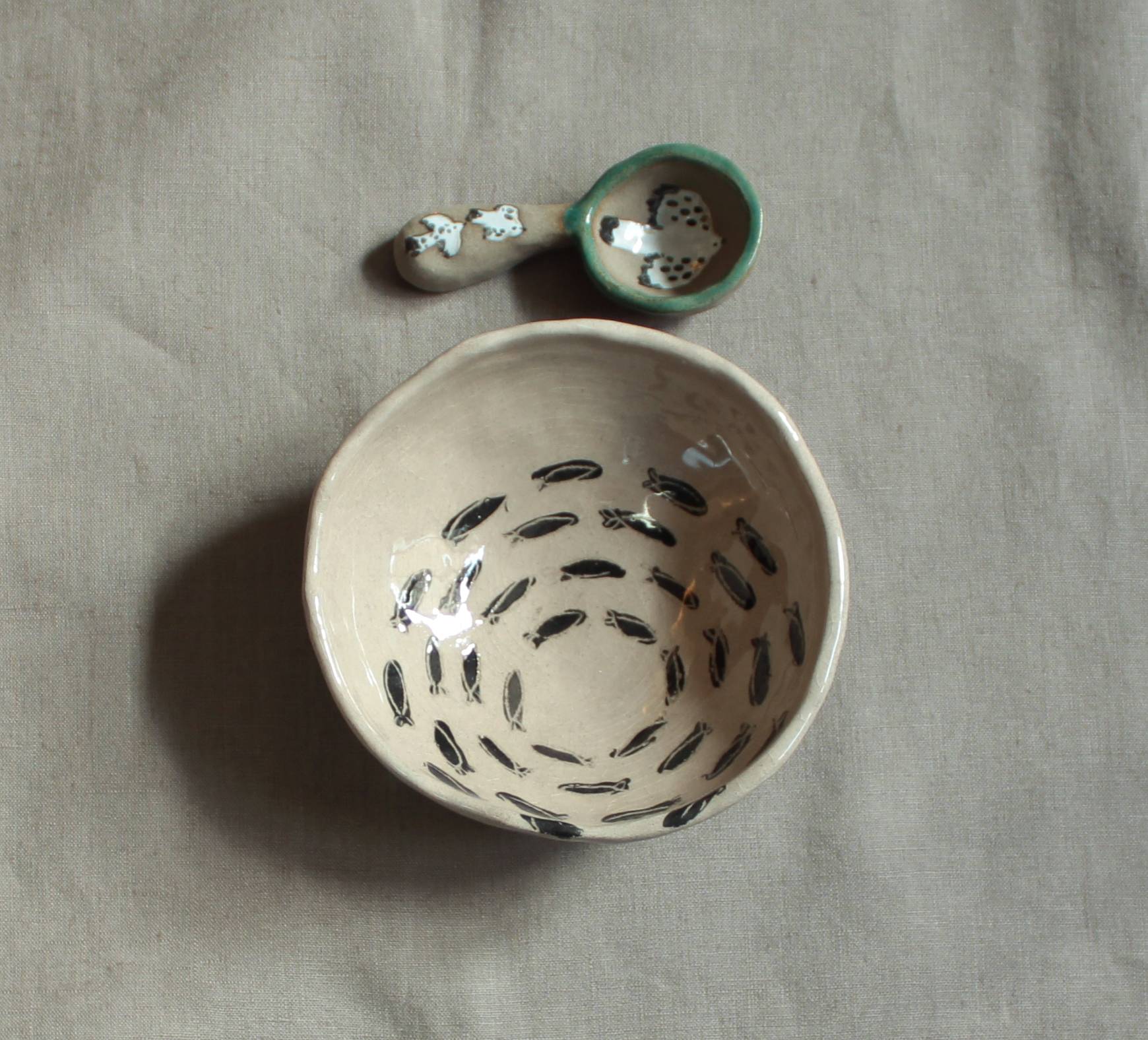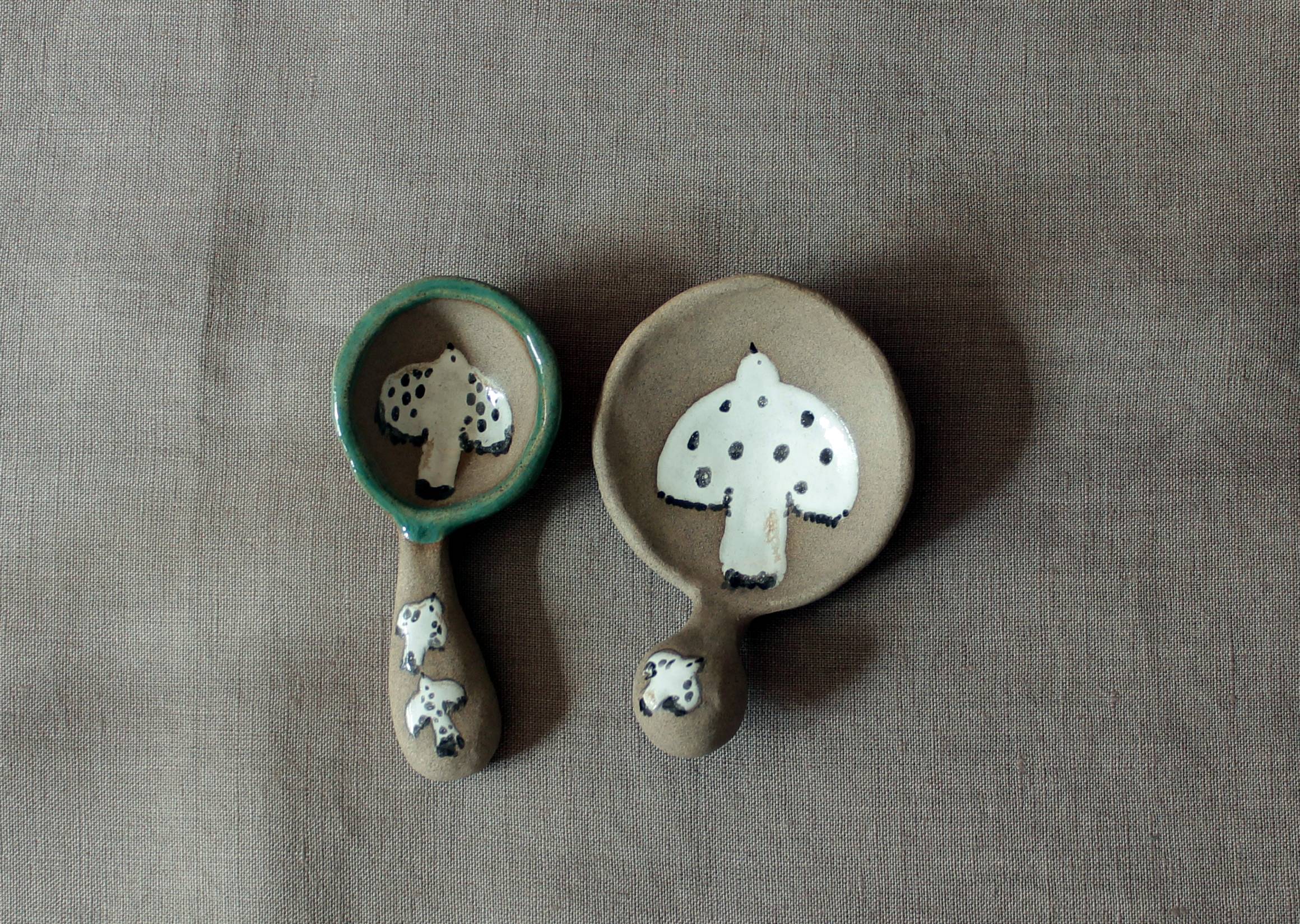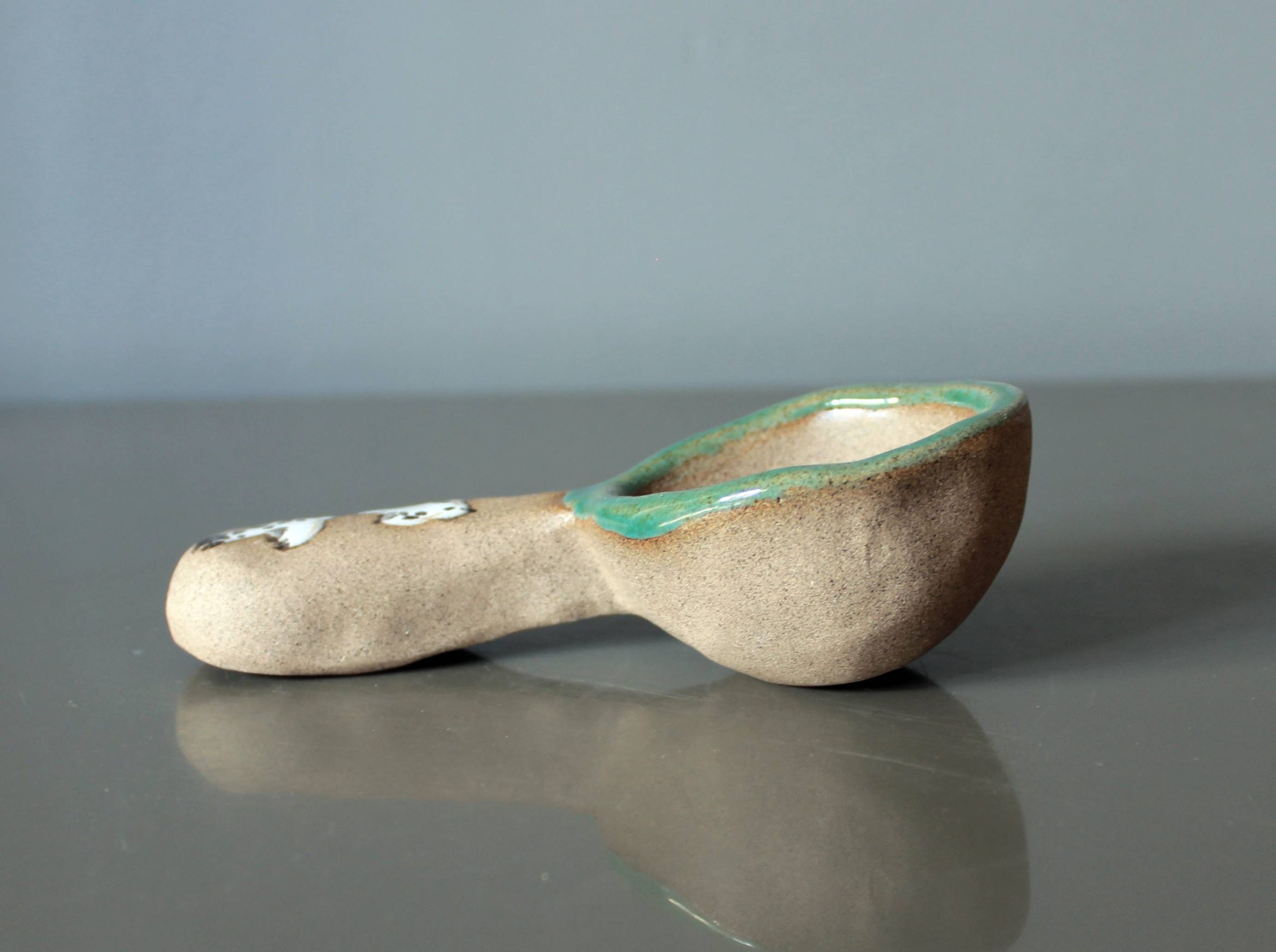El Yapımı Kuş Desenli Seramik Kaşık | Stoneware | 12 cm | Zarif ve Doğal