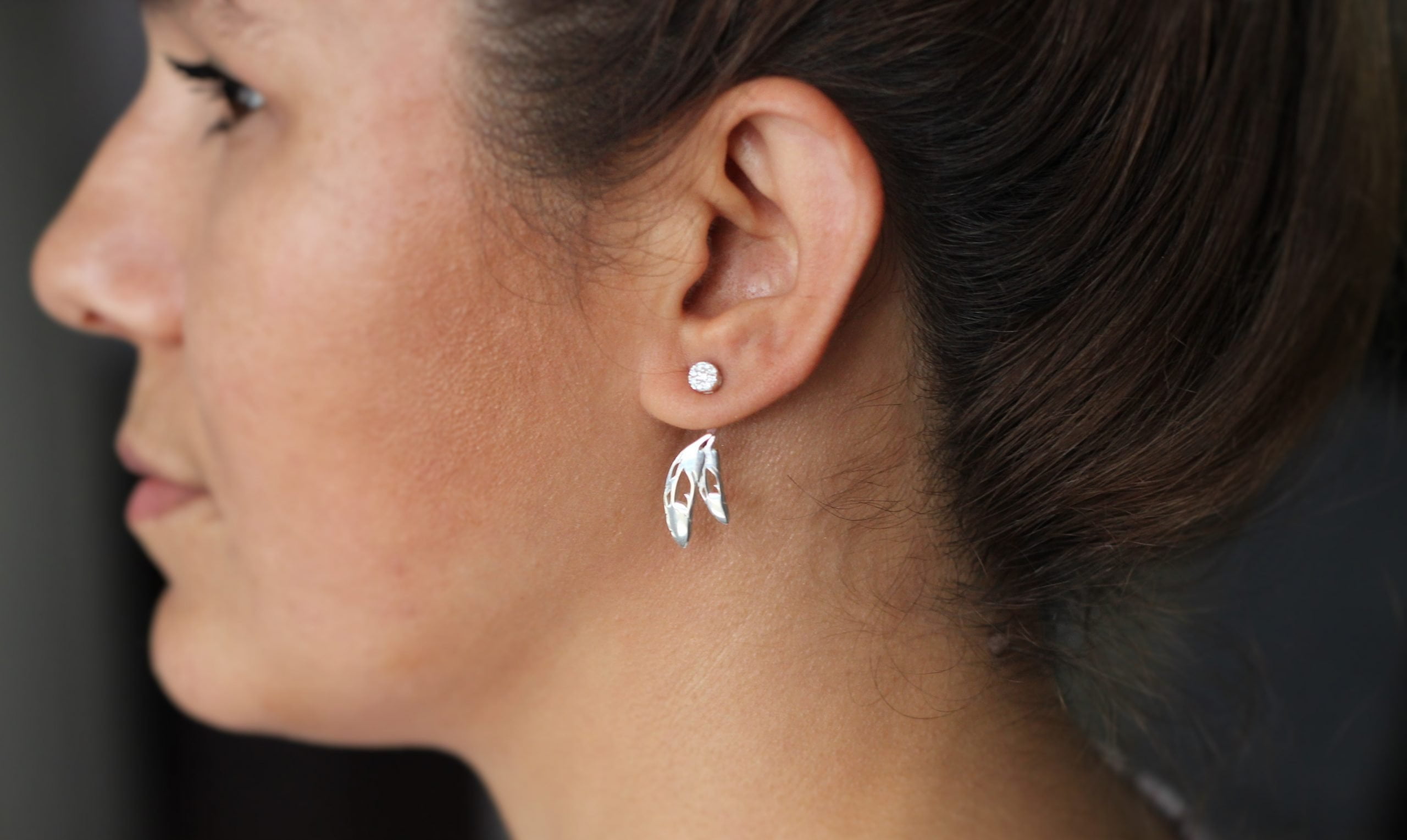 Tüy Rüya Avcısı Gümüş Ceket Küpe / Çift