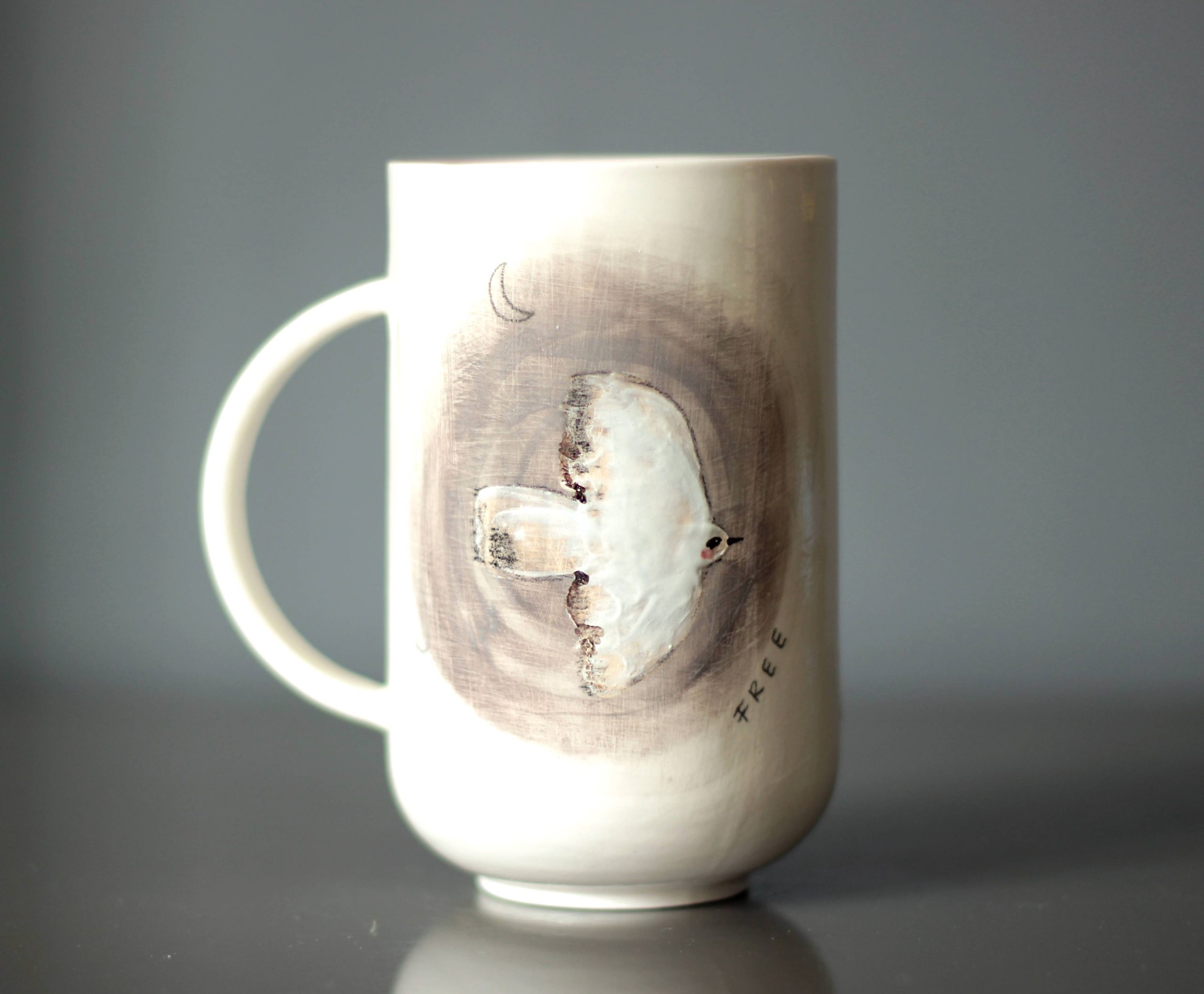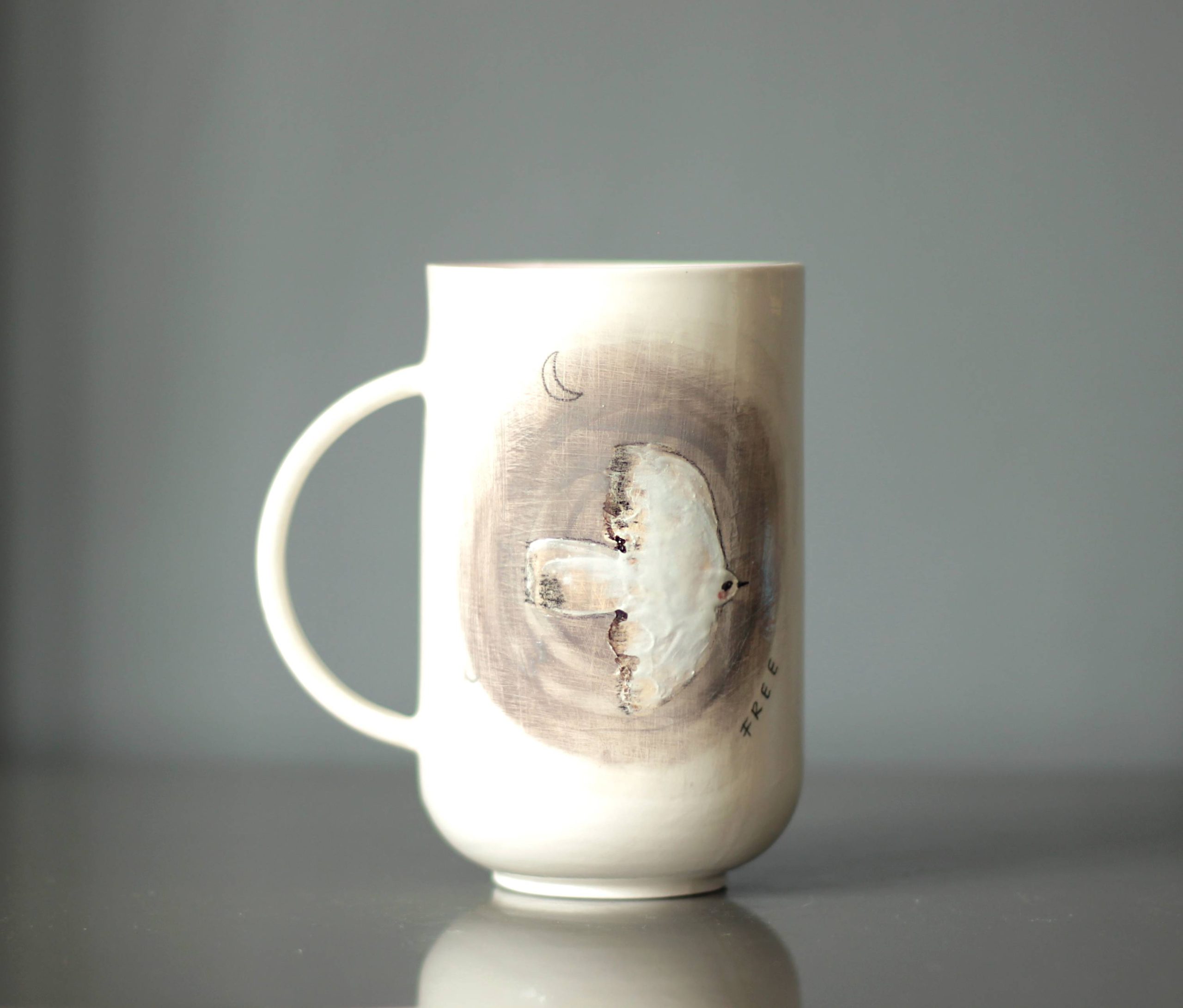 Gökyüzünde süzülen kuşlarla geceyi simgeleyen ay ile şekillenen bir dünyaya davet ediyor. “Free” yazısı, bu özgür duyguyu pekiştiriyor. Geceyle sarılmış, huzurlu ama bir o kadar da düşündüren bir tasarım. Kendi iç yolculuğunuzu keşfederken, her yudumda özgürlüğün tadını çıkarın.