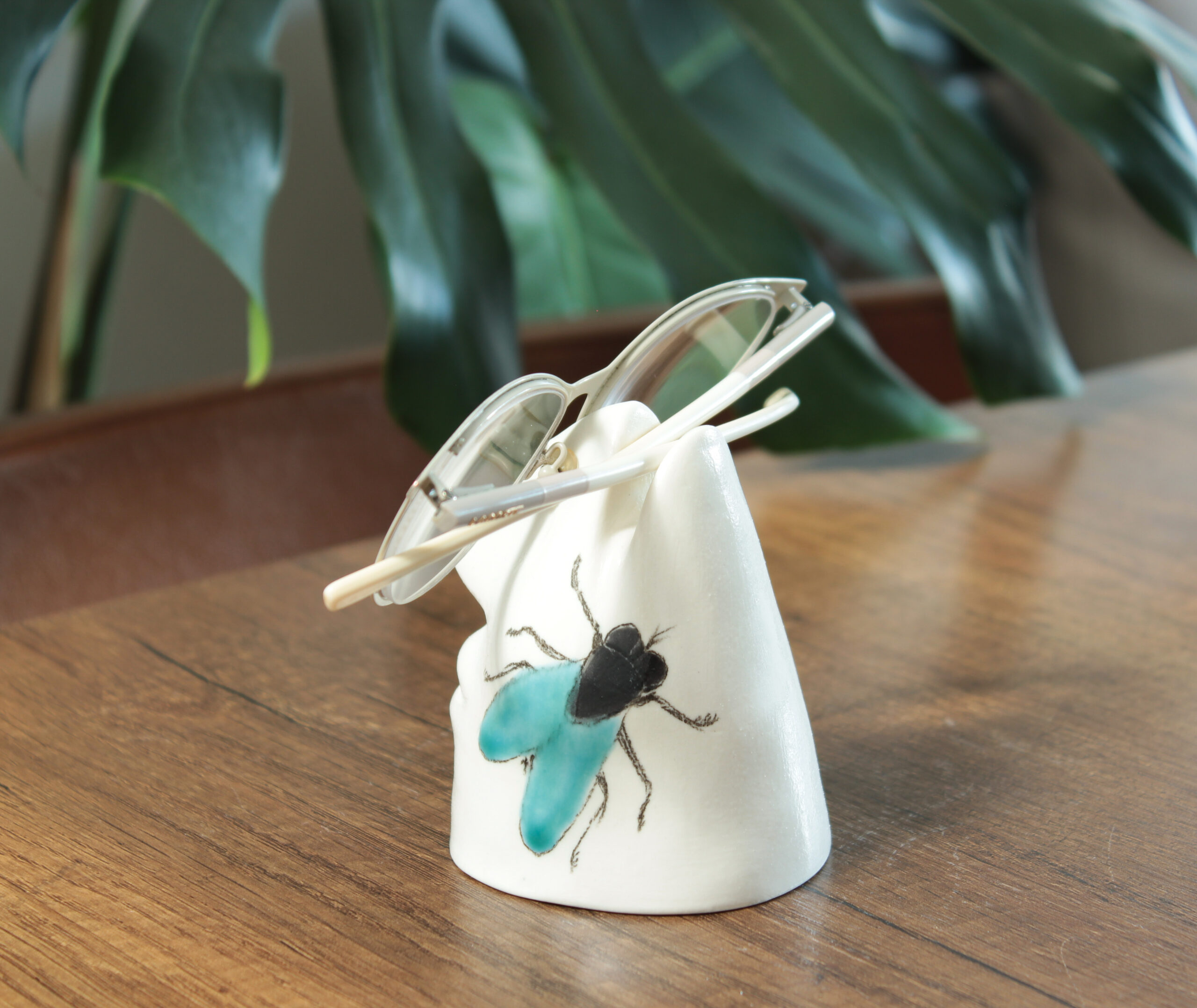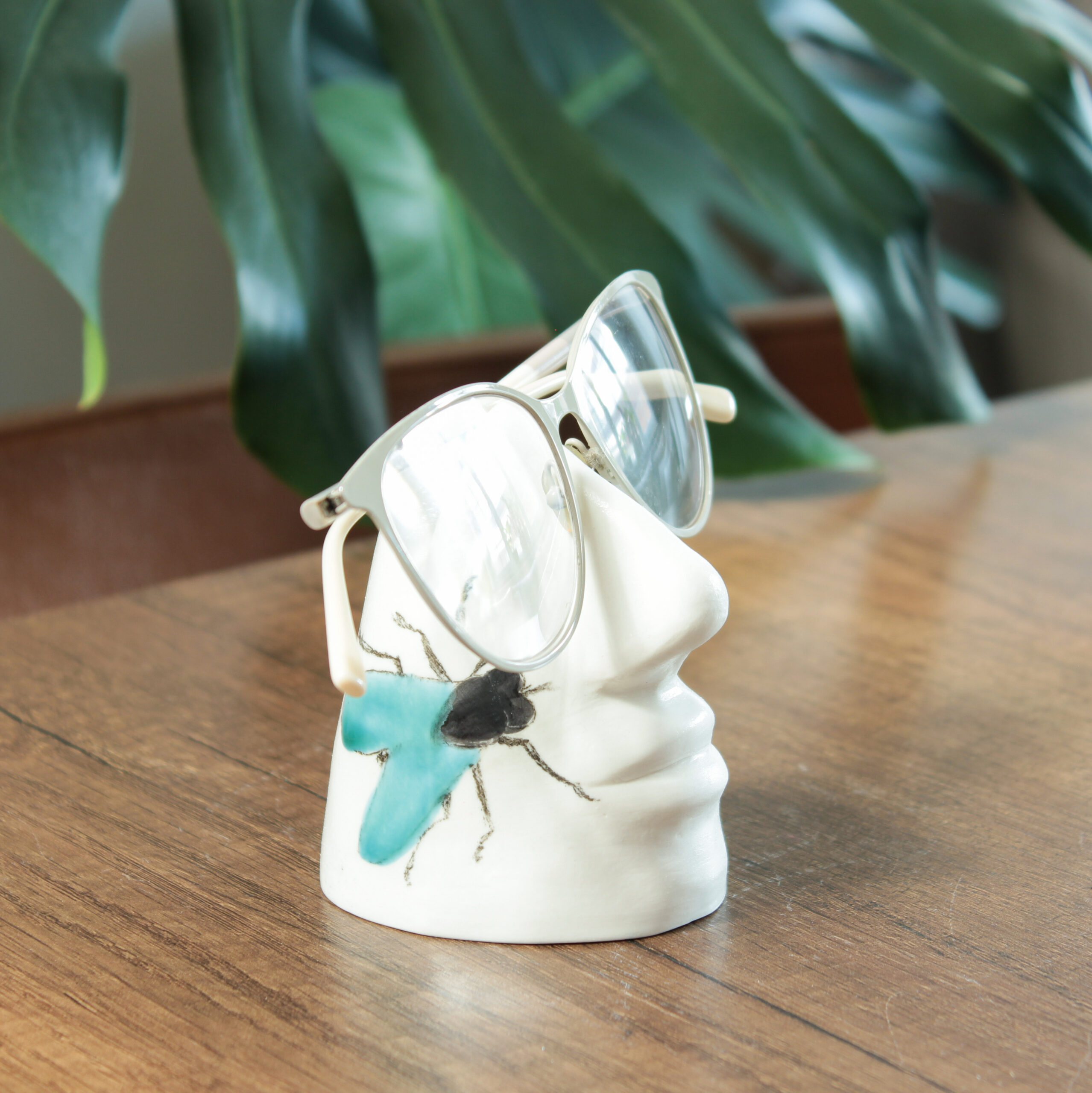 Gözlüğünü yine nereye koyduğunu unuttun, değil mi? Masanın üstünde ters dönmüş, kitapların arasında kaybolmuş ya da koltuğa oturunca üzerine oturduğun klasik senaryolar… İşte tüm bunlara sinekli seramik gözlük standı ile son veriyoruz!