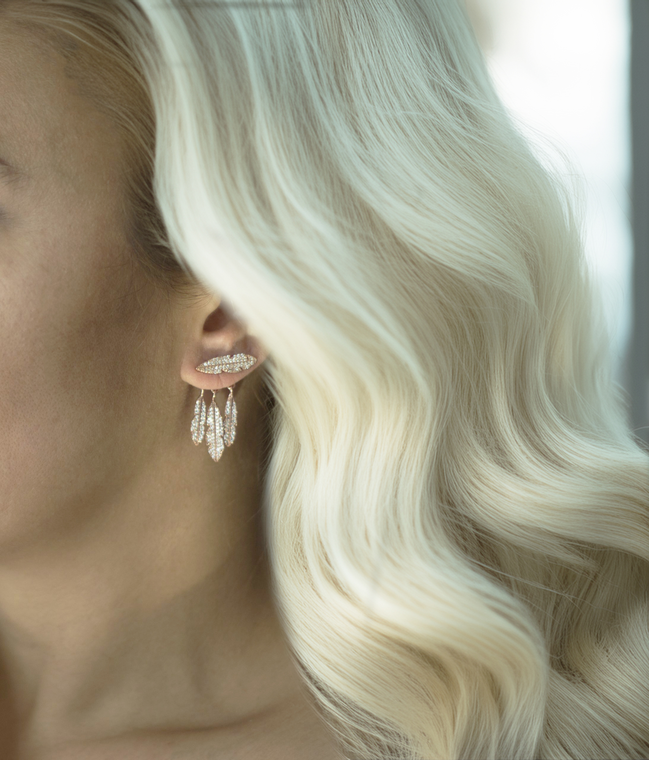 Kuş Tüyü Zirkon Taşlı Ceket Gümüş Küpe /Çift