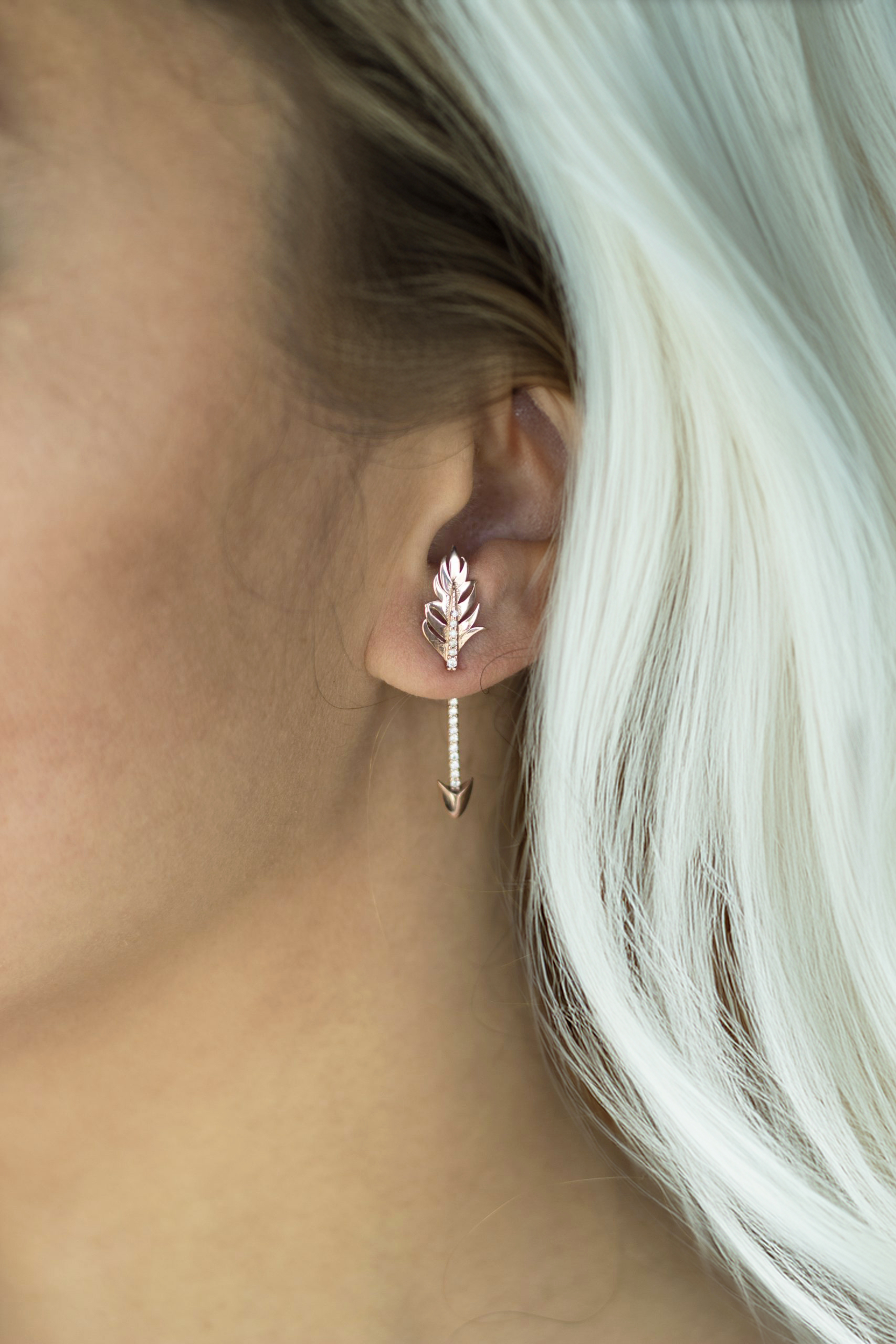 Kuş Tüyü Ve Ok Ceket Gümüş Küpe / Çift