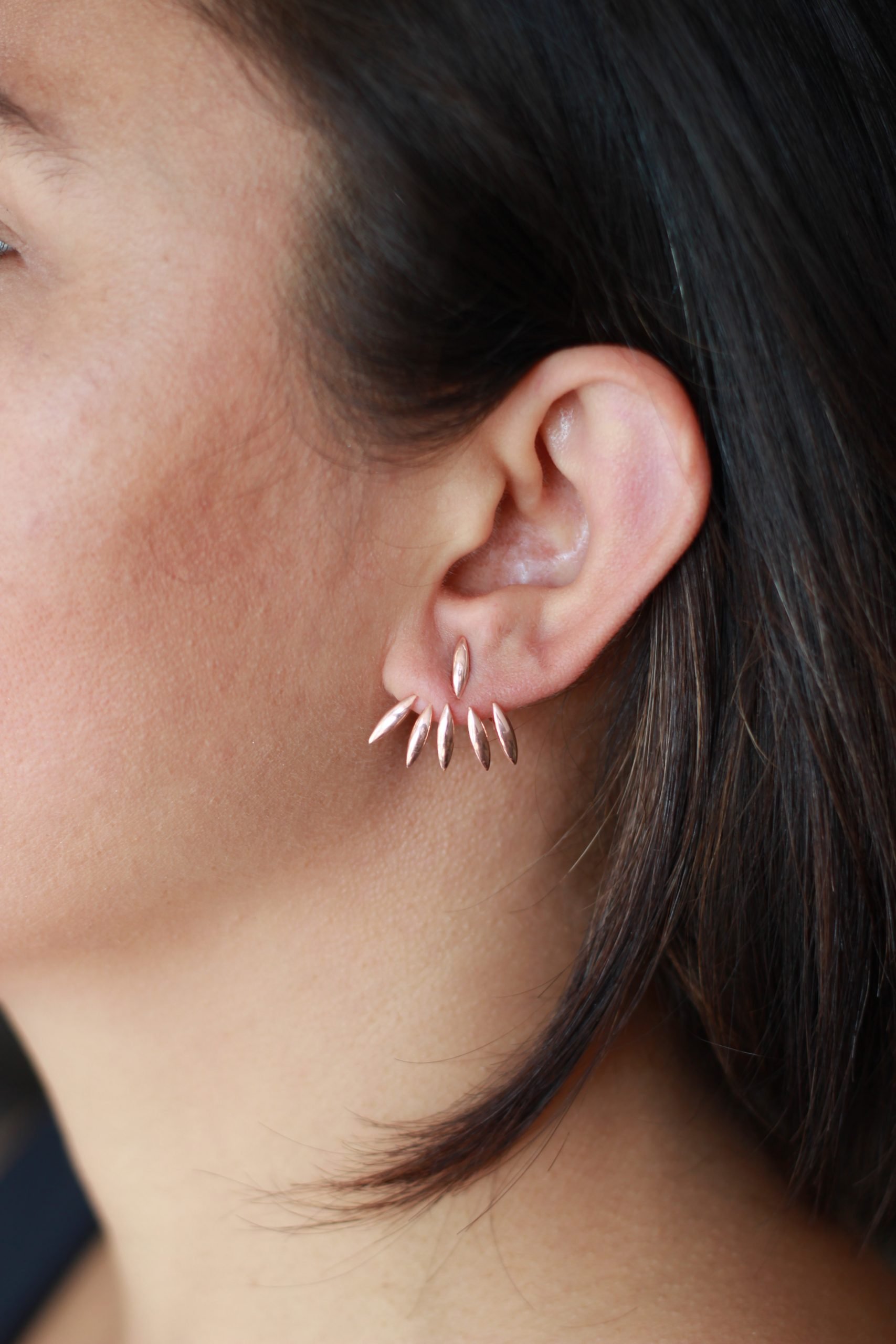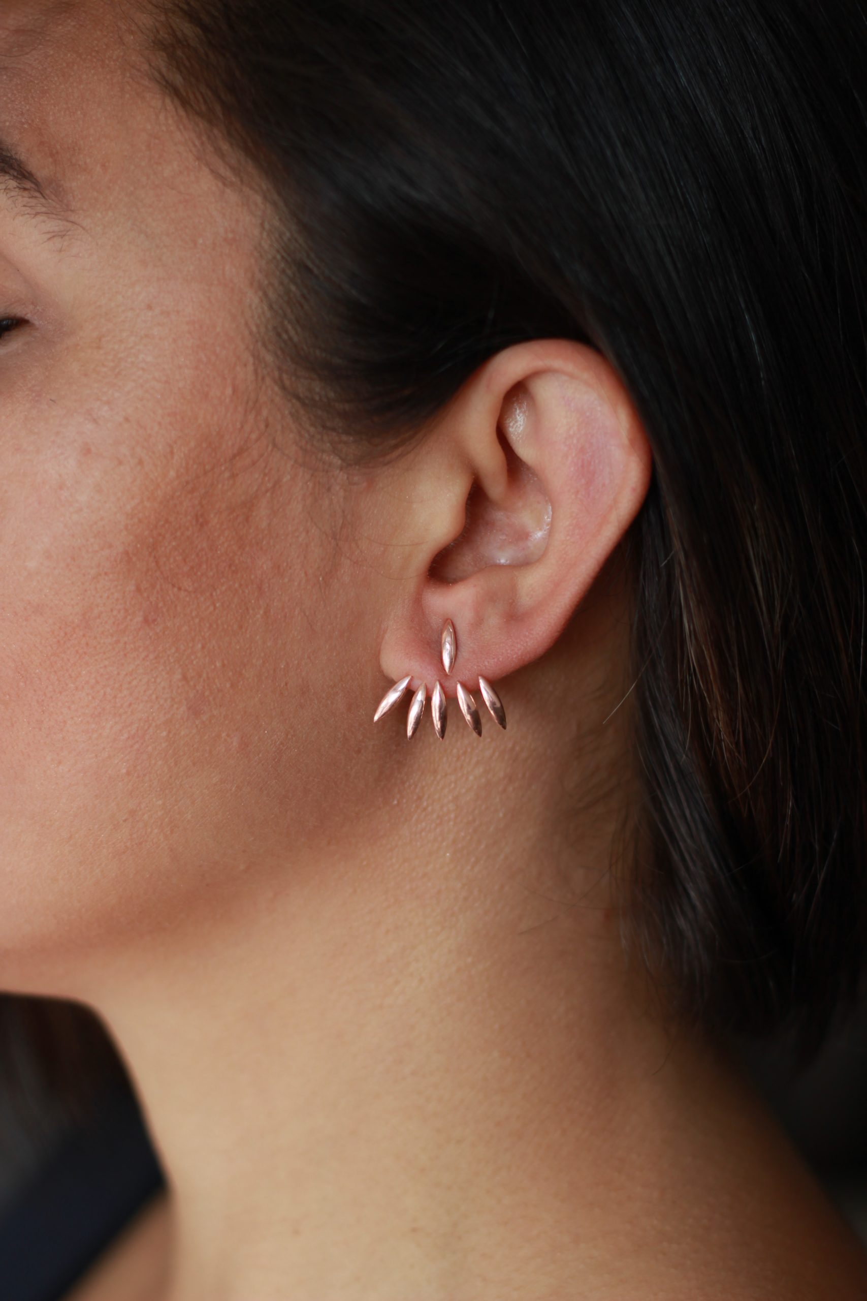 Markiz Ceket Roz Altın Kaplama Gümüş Küpe / Çift