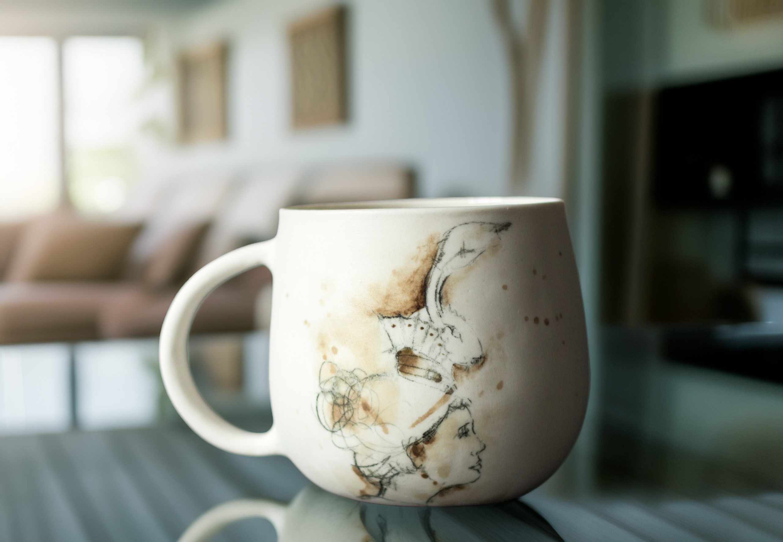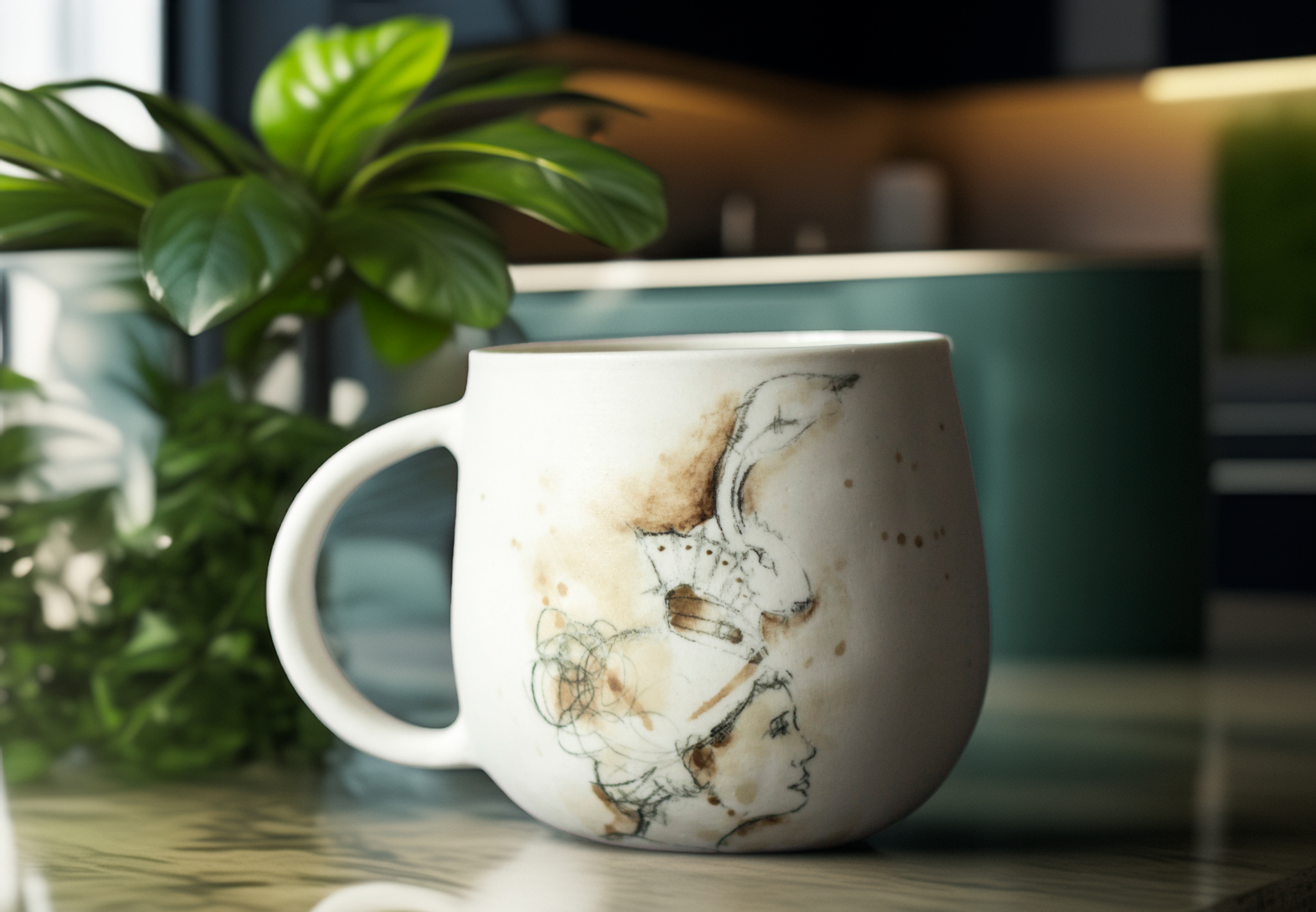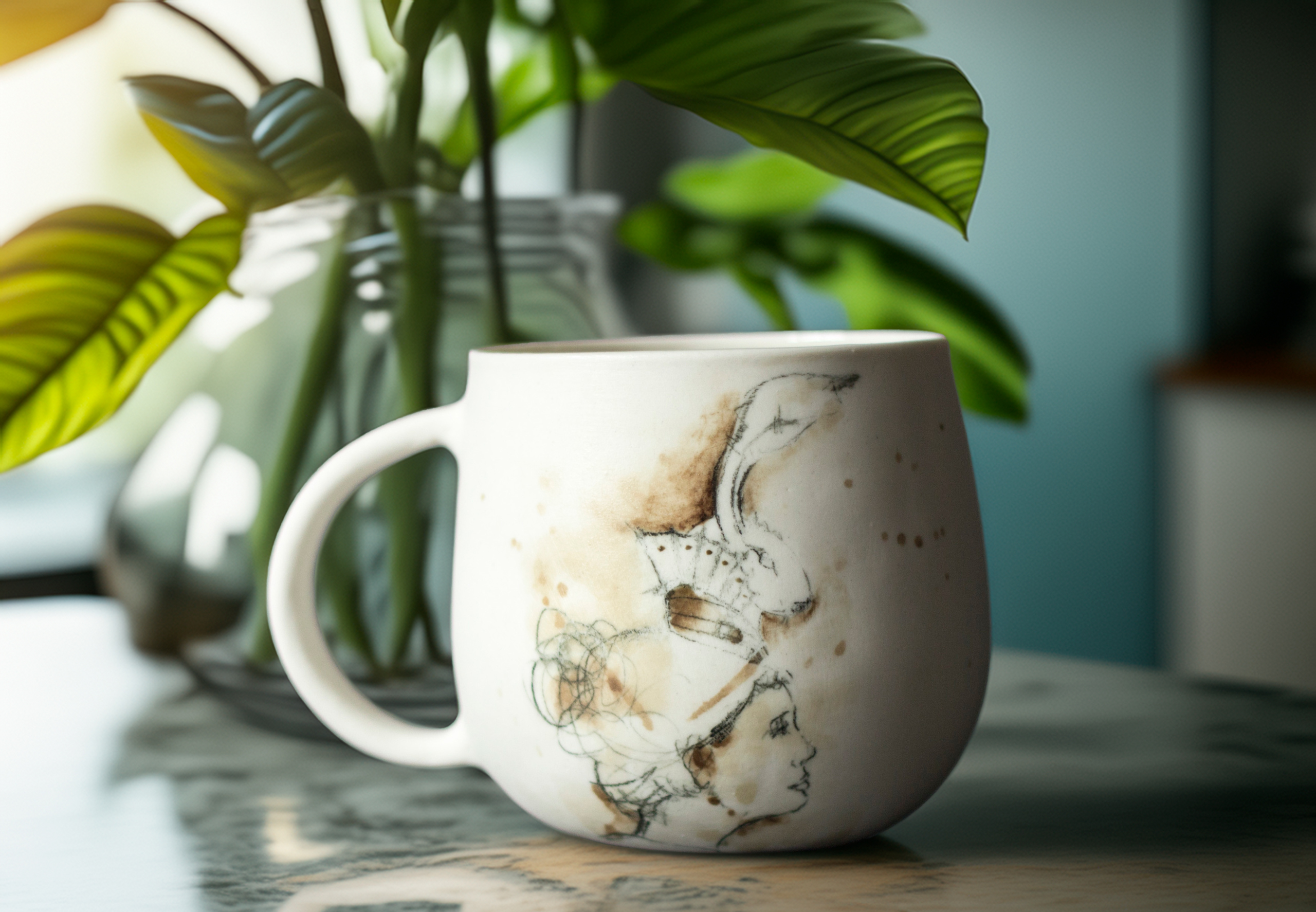 Porselenden yapılmış ve elde resmedilmiş kupa.