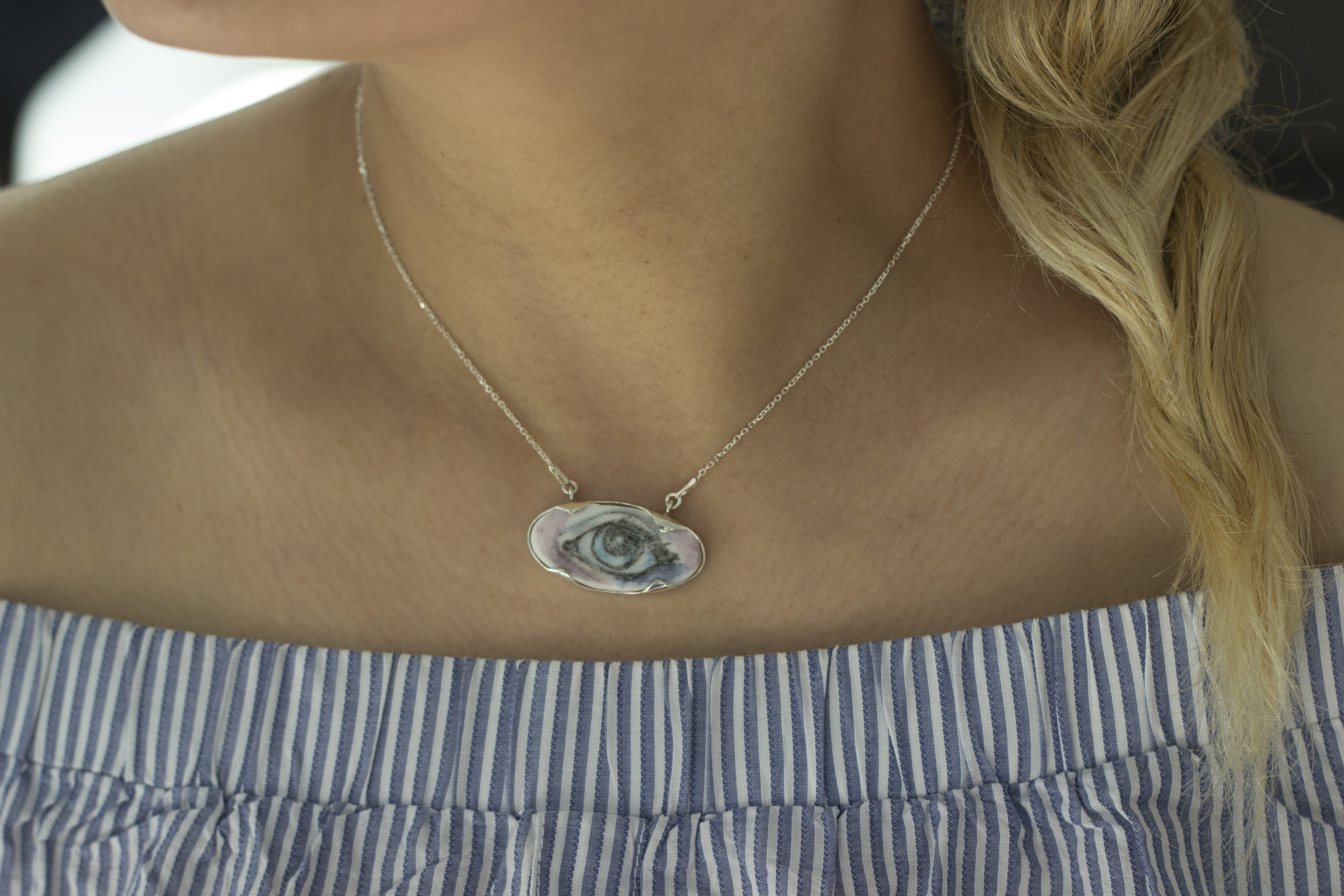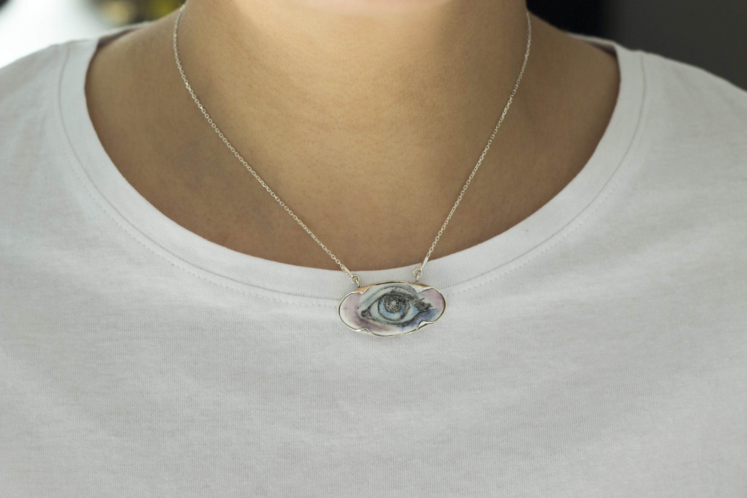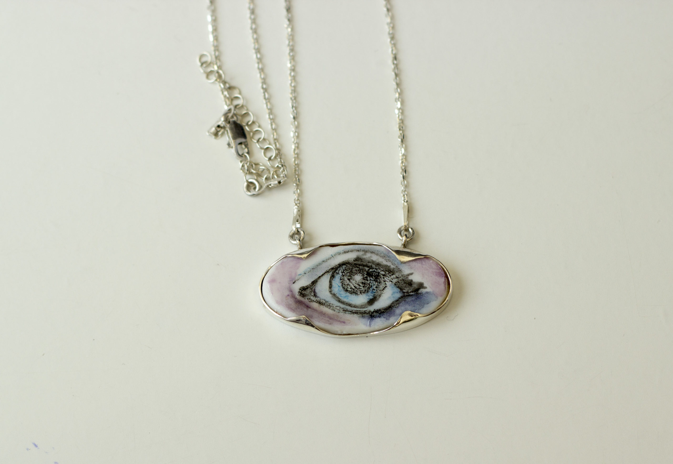 Porselen Göz Gümüş Kolye / Nazar Kolye