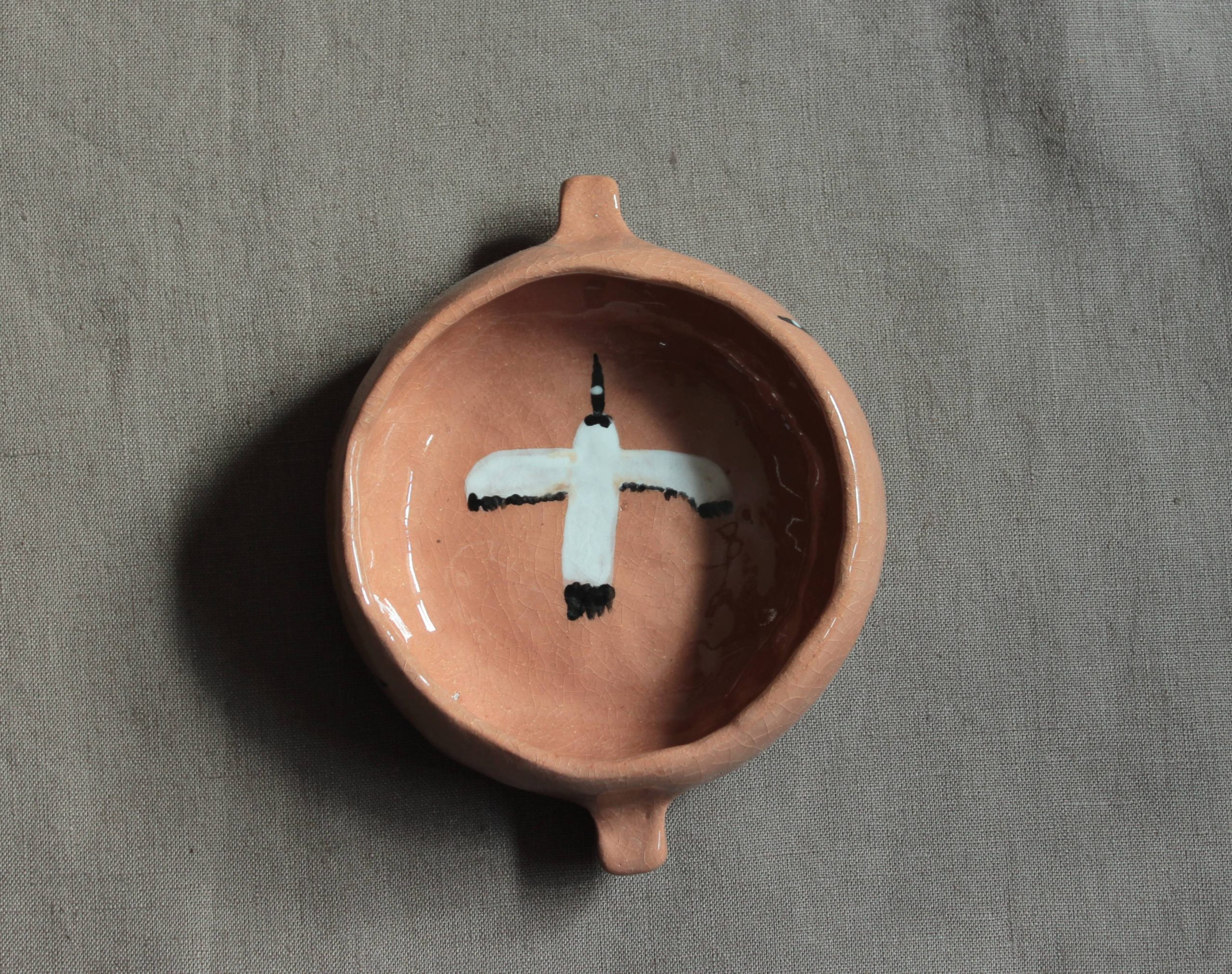 Yüzeyinde kullanılan çatlak dokulu şeffaf sır, tabağa hem zarif bir parlaklık hem de benzersiz bir doku kazandırıyor. Doğal formu ve sade detaylarıyla hem estetik hem de anlam yüklü bir parça.