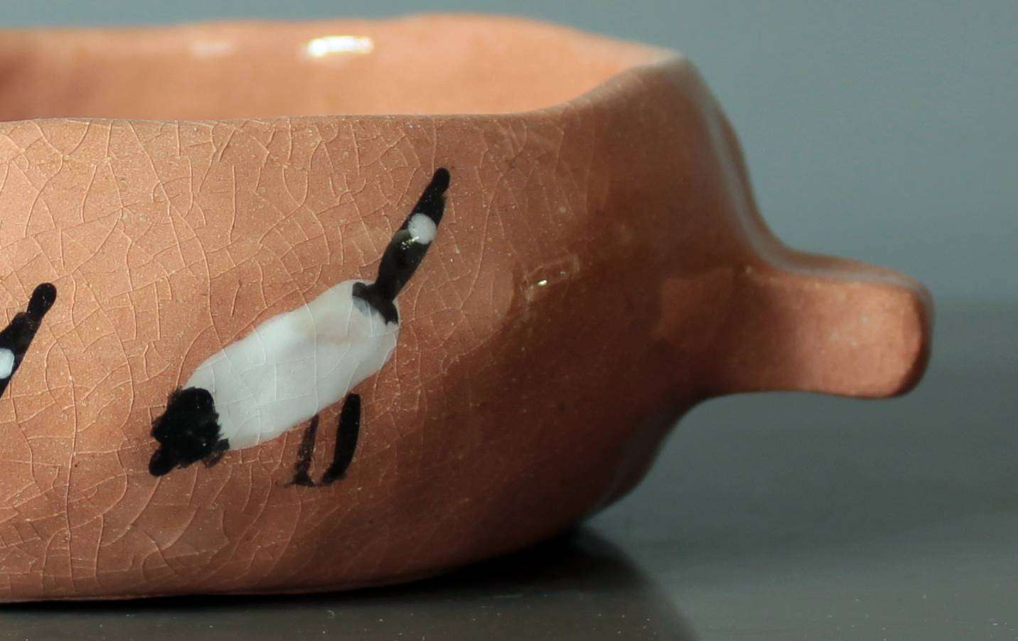 George and Schneider çamurdan yapılmıştır. Amaco sır ile desenlendirilmiştir.