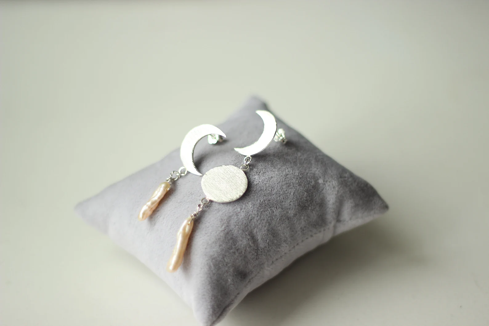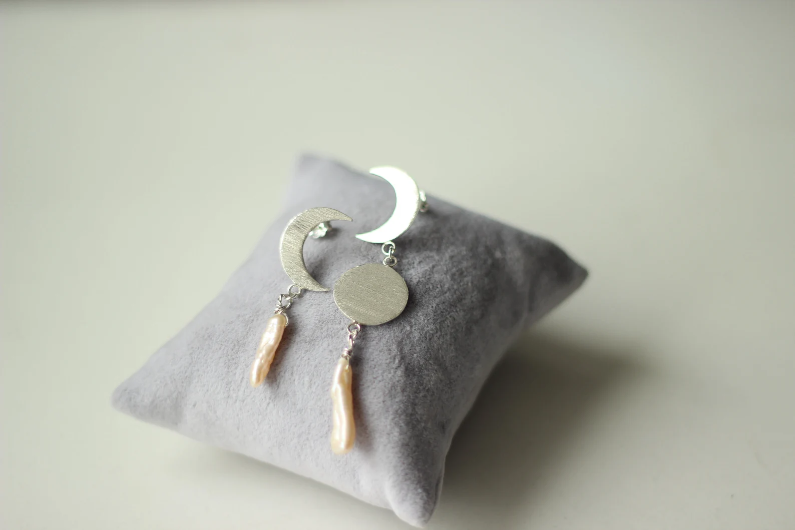 Tatlı Su İncileri ile Dolunay ve Hilal Küpe/ Asimetrik Küpe /Çift *