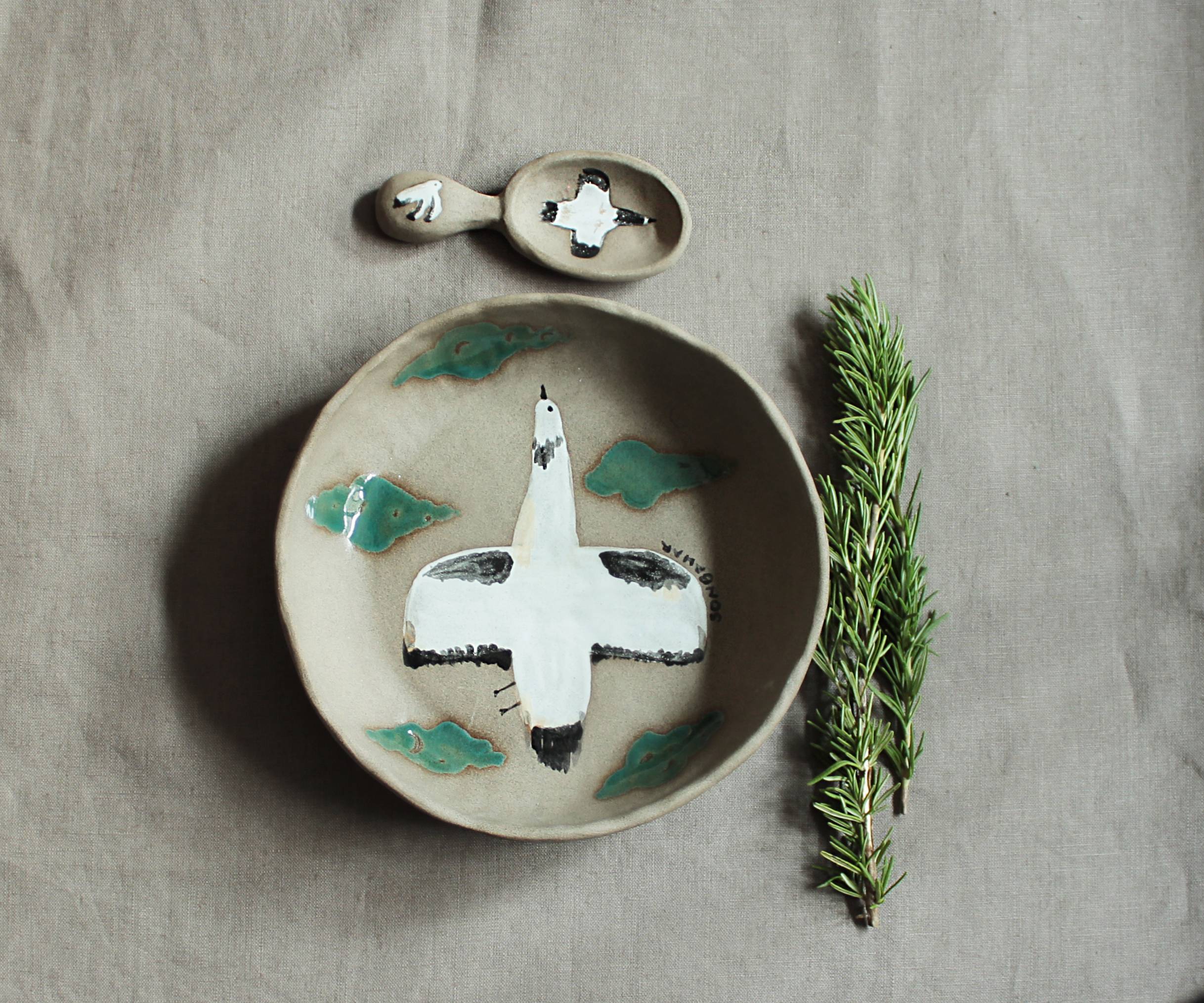 Toprağın Hafızası – Göçmen Kuşla Bezenmiş Stoneware Kaşık