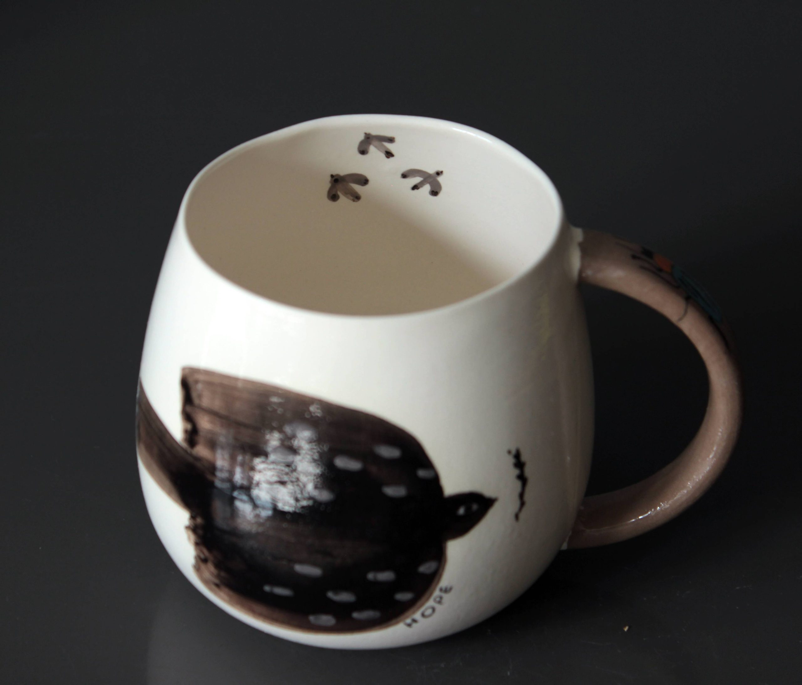 Bu özel porselen kupa, zarif bir umut mesajı taşıyor. Üzerindeki uçan siyah kuşlar ve içinde minik kuşlar ile özgürlük ve yeni başlangıçların simgesi haline geliyor. Yüksek sıcaklıkta (1200°C) pişirildiği için kupanın formu tam simetrik değildir. Bu, her bir parçanın kendine özgü bir karakter taşımasını sağlar “Hope” (Umut) yazısı ise, her yudumda seni pozitif düşüncelerle saracak bir hatırlatıcı. Kendine veya sevdiklerine özel bir hediye olarak ideal.