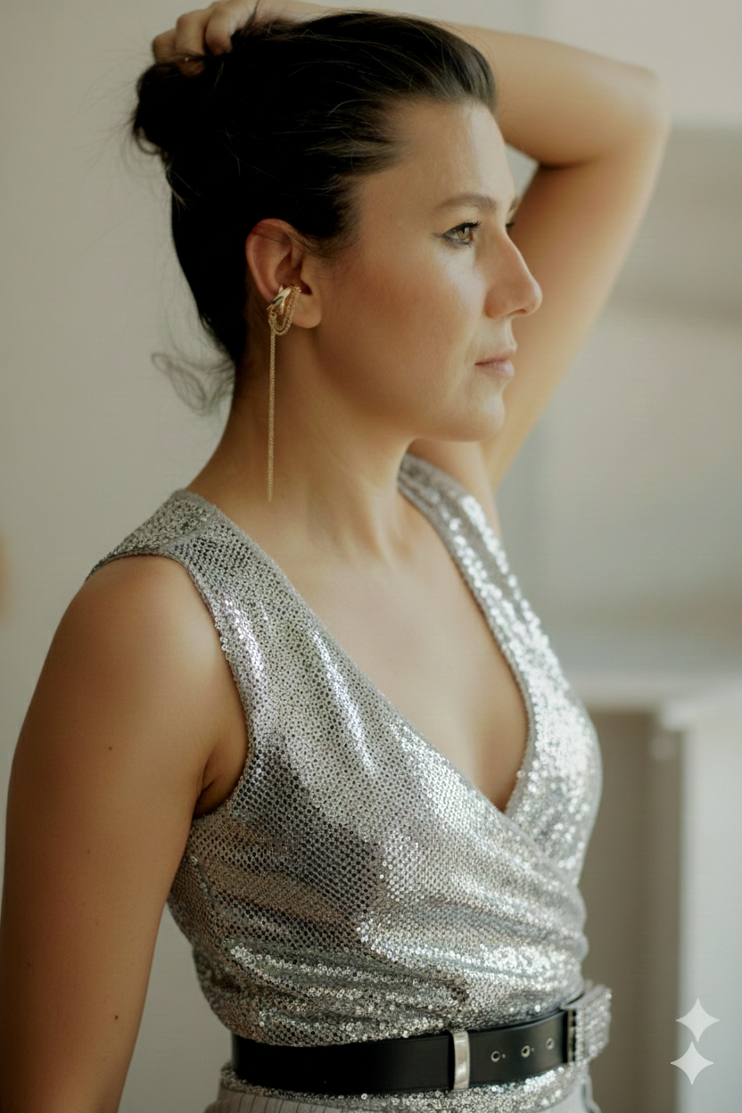 Arkadaşlarla kahve içerken, akşam yemeğinde ya da sadece kendin için dışarı çıktığında — bu küpe sizinle uyumlu, sizin tarzınızı tamamlayan vazgeçilmez bir parça olur.