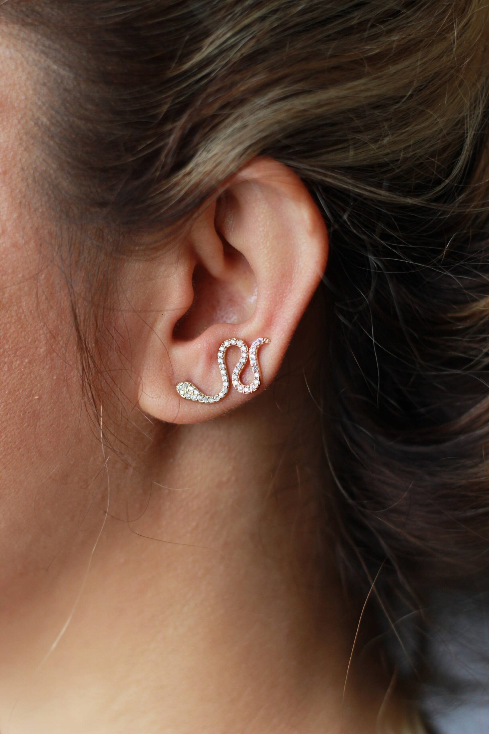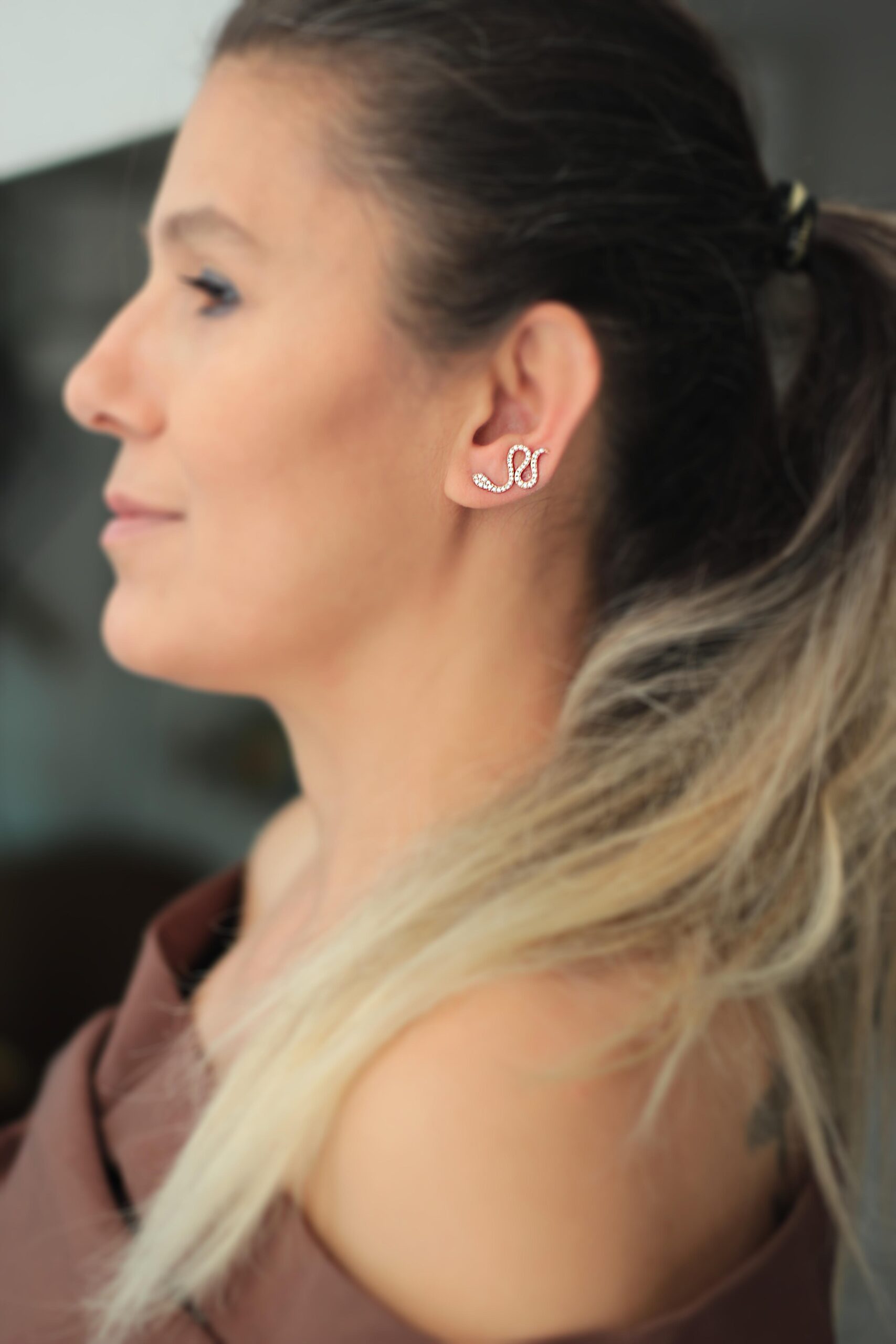 Yılan Tırmanıcı Gümüş Küpe / Çift