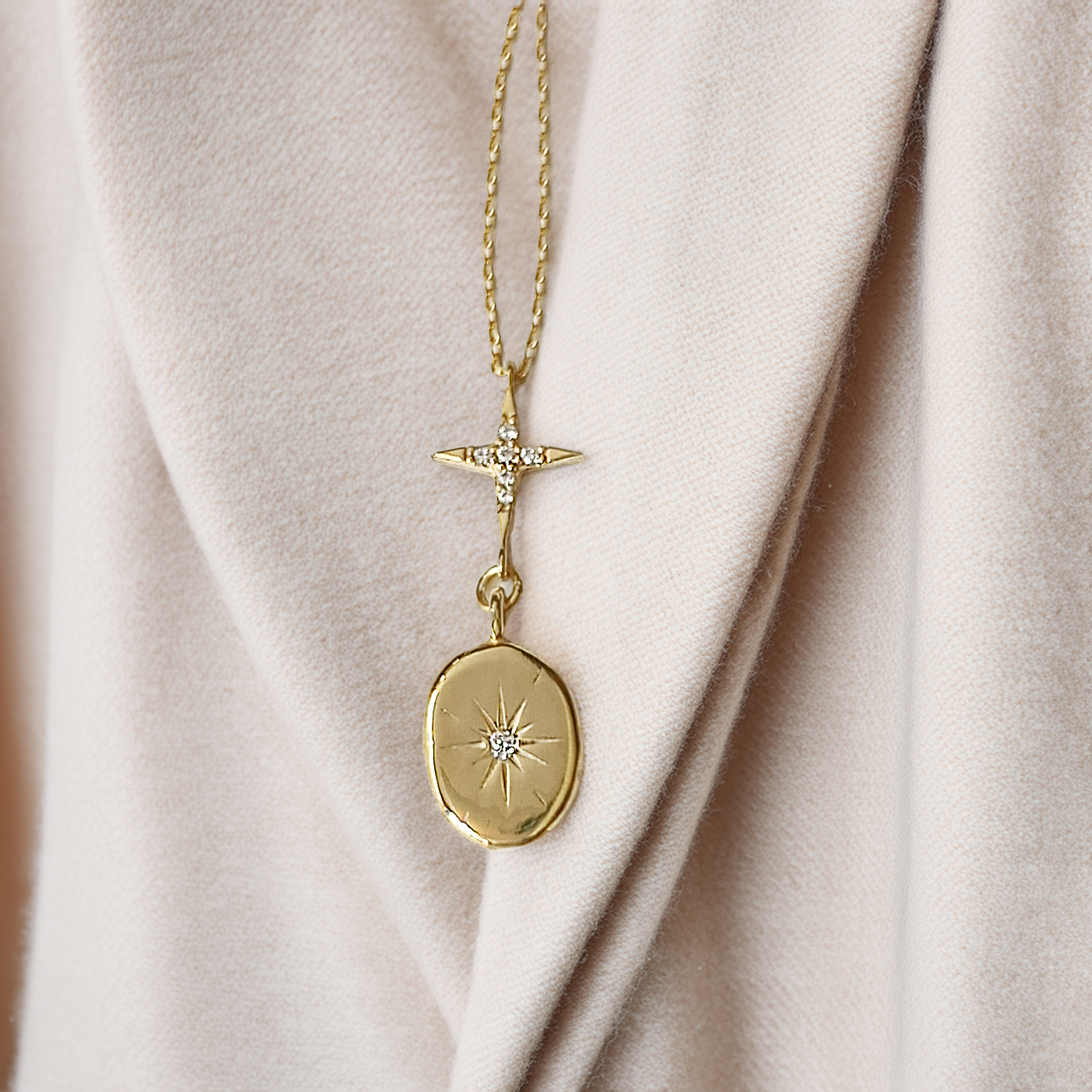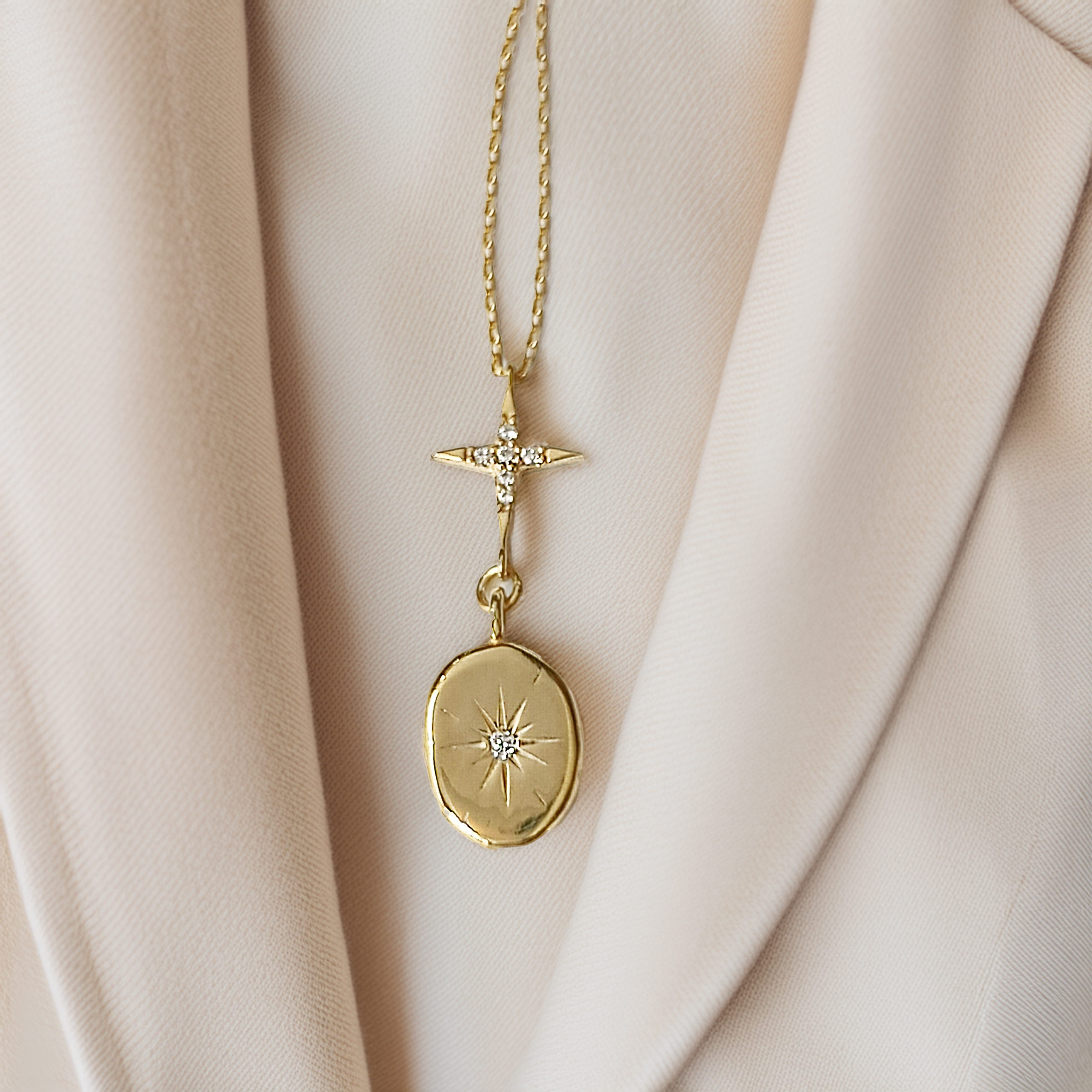 Altın ve gümüş yıldız & güneş kolyelerle tarzınıza gökyüzünün büyüsünü ekleyin ve her anın ışığını üzerinizde taşıyın!