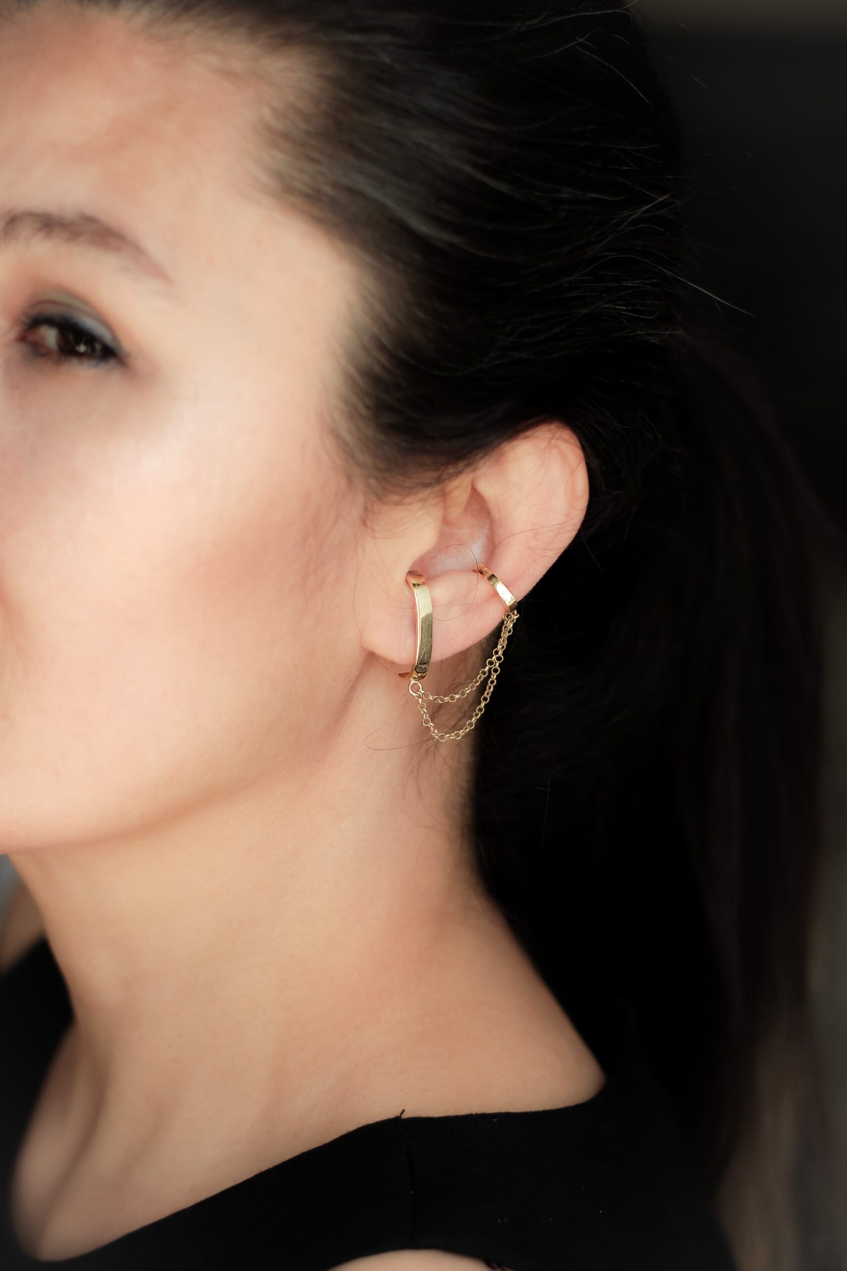 Zincirli Kıkırdak Gümüş Küpe / Tek Küpe