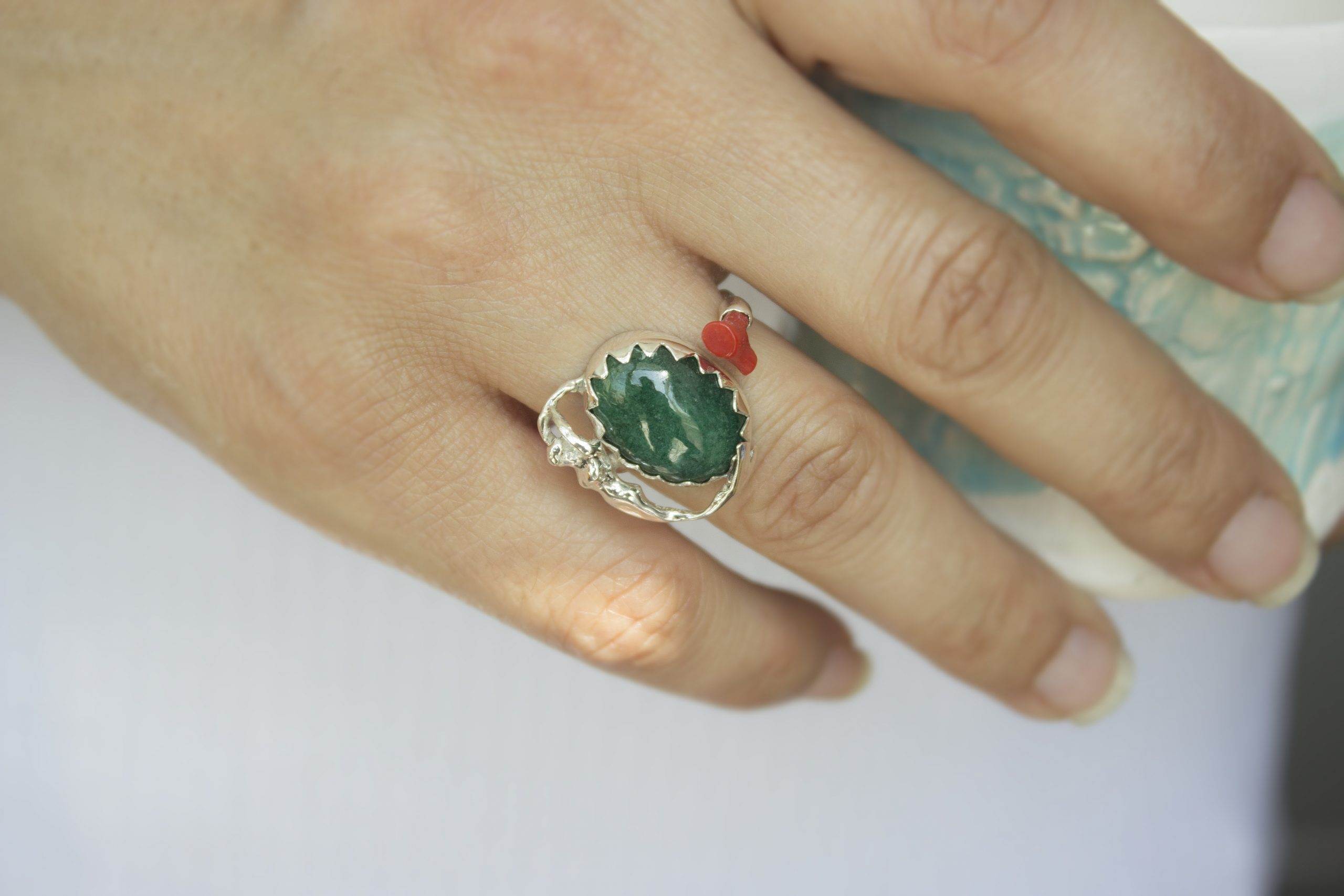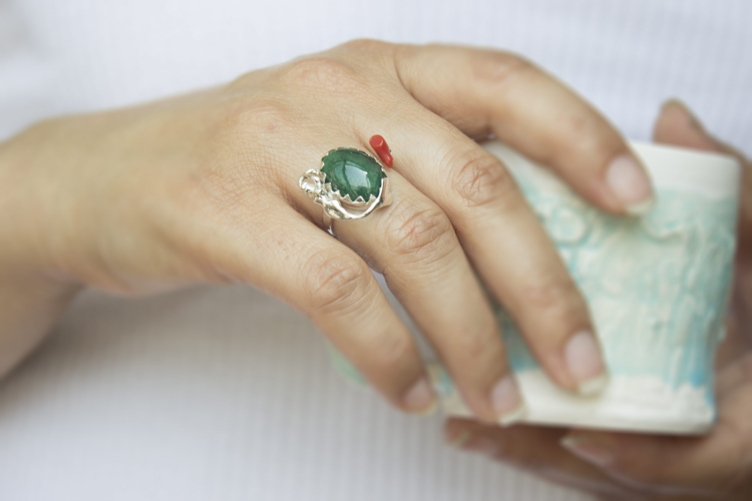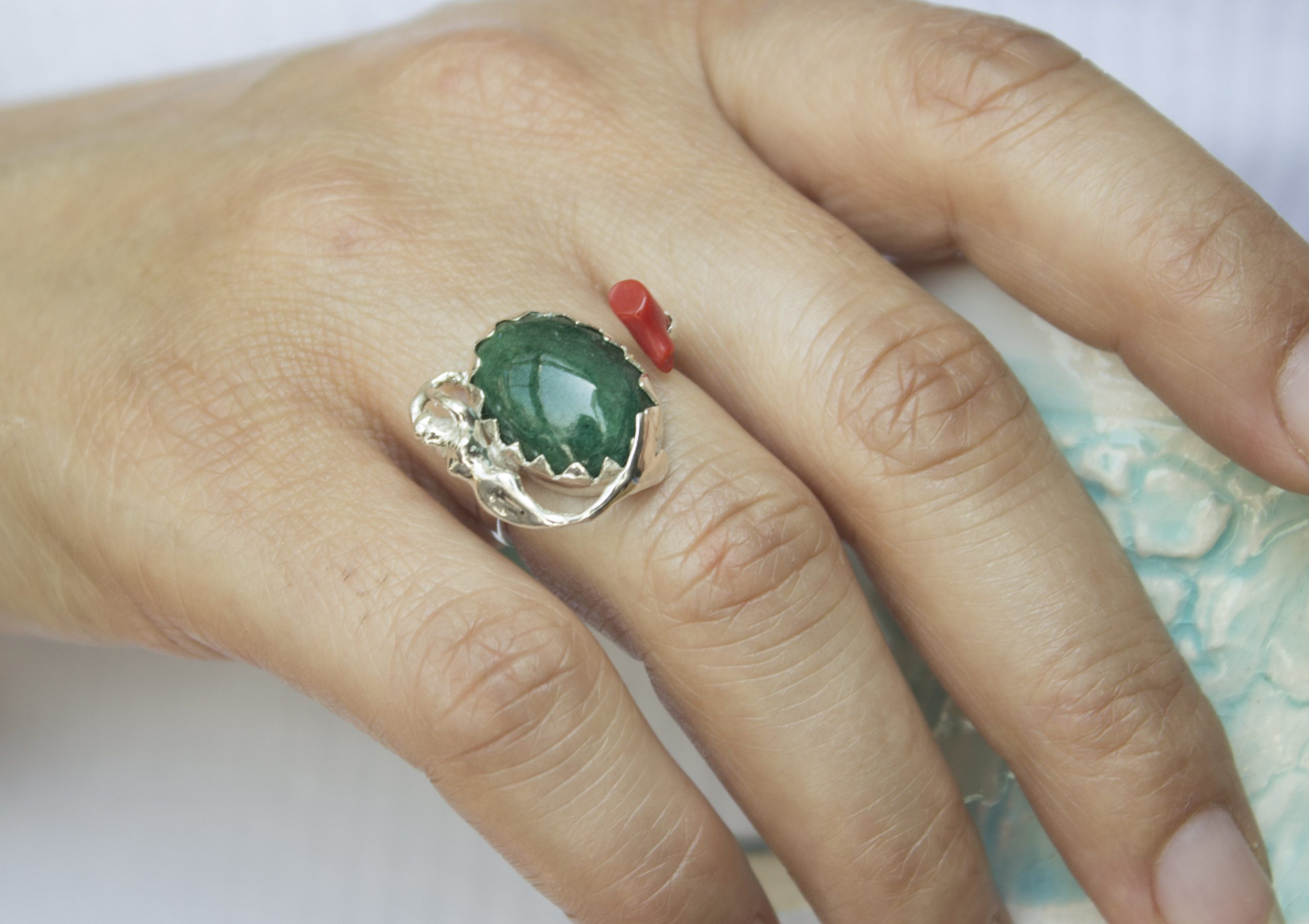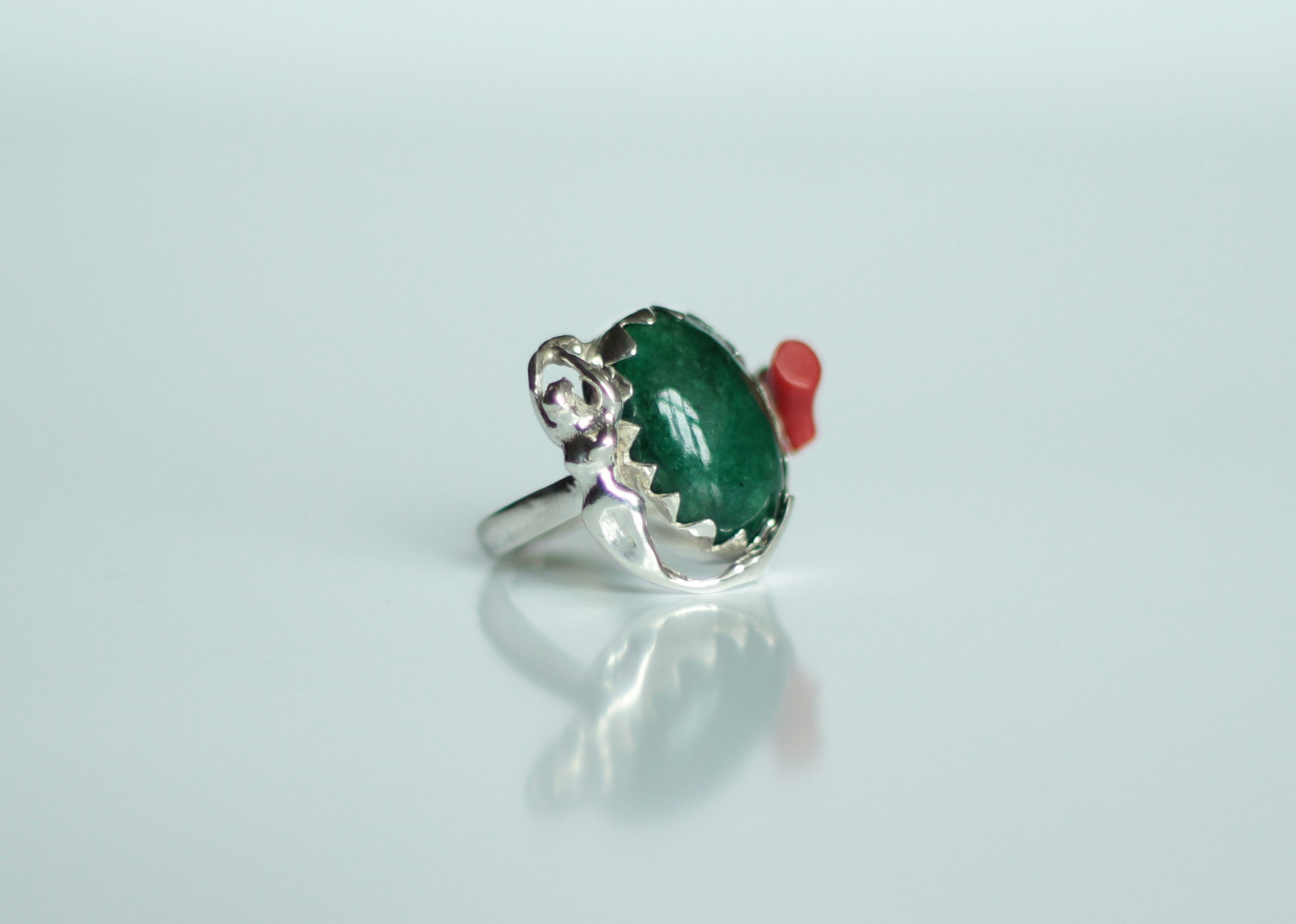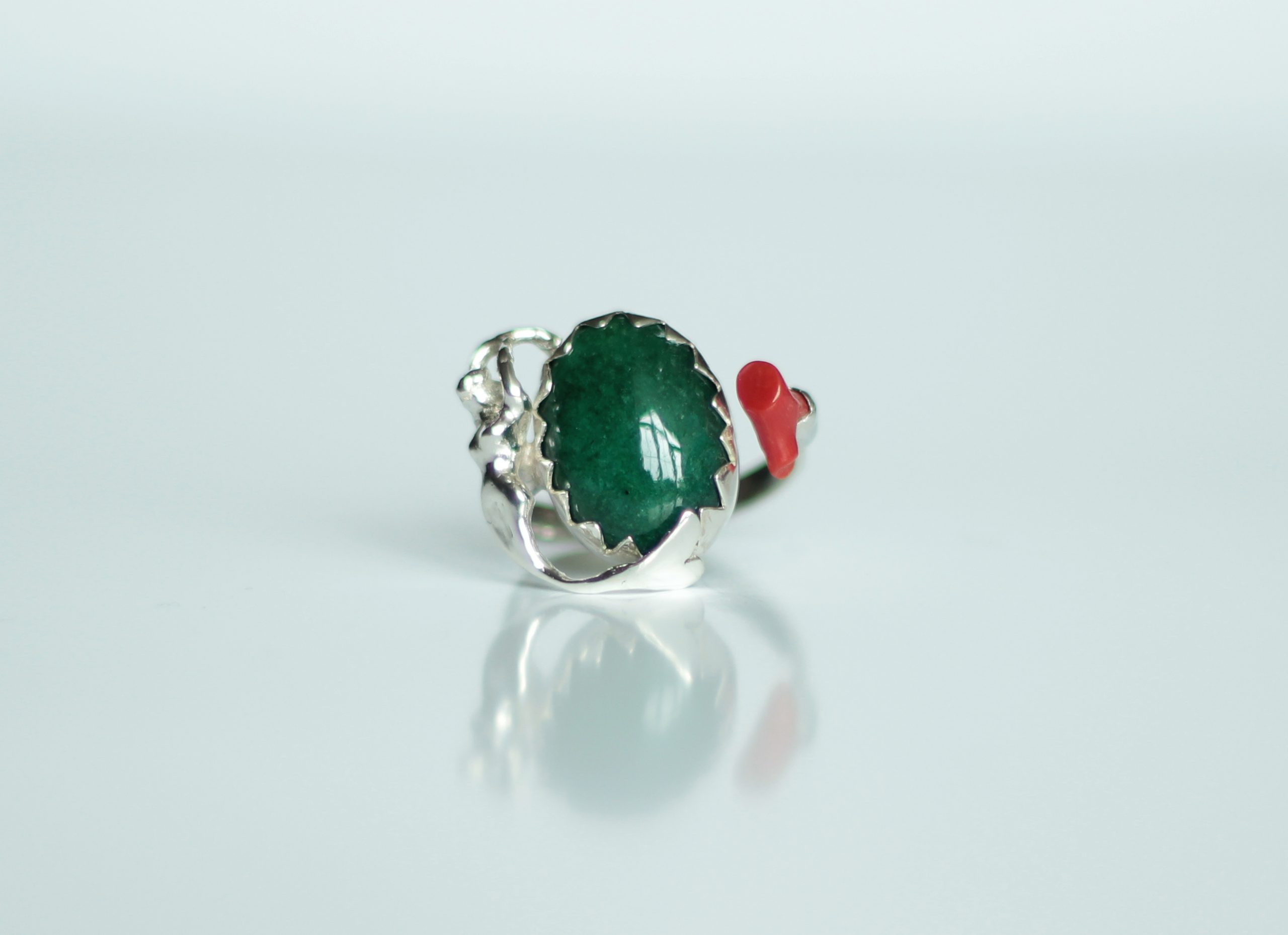 Zümrüt, Mercan ve Deniz Kızı Gümüş Yüzük / Studio Mirage